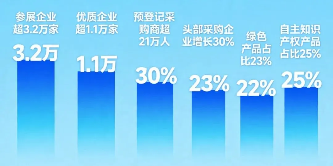 这不是偶然。本届广交会展览总面积155万平方米,展位总数7.57万个,参展企业超3.2万家,三项核心指标均刷新历史纪录。约3900家企业首次亮相,超1.1万家拥有专精特新、单项冠军等称号的优质企业集中登场。