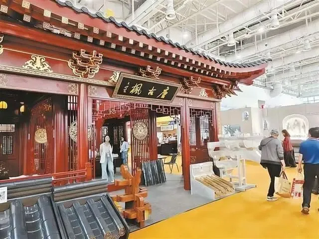 “唐古枫”把古色古香的唐代亭台楼阁“搬”到了会场——这些古建筑上,飞檐翘角与仿古砖瓦交相辉映,设计精巧的凉亭和连廊惟妙惟肖。“唐古枫”现场负责人罗舷指着一大片看似木质的建筑透露“玄机”:它们其实是铝质材料,运用到庙宇或仿古建筑中,既有“高级感”,还避开了传统木质建筑易被腐蚀的先天不足。