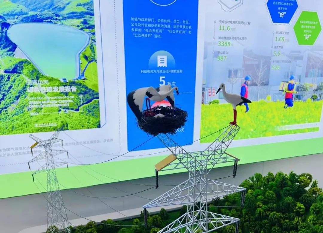 “国家电网公司在主题展区旁的央企展区精心打造了国网‘候鸟生命线’公益品牌项目沙盘。”市供电公司党建部门负责人曾菲介绍,该“候鸟生命线”沙盘以全国第二个、江苏首个东方白鹳保护地——我市界首镇大昌村东方白鹳保护地为原型,真实再现了“网红”东方白鹳夫妇在输电铁塔上生存繁衍的情景。