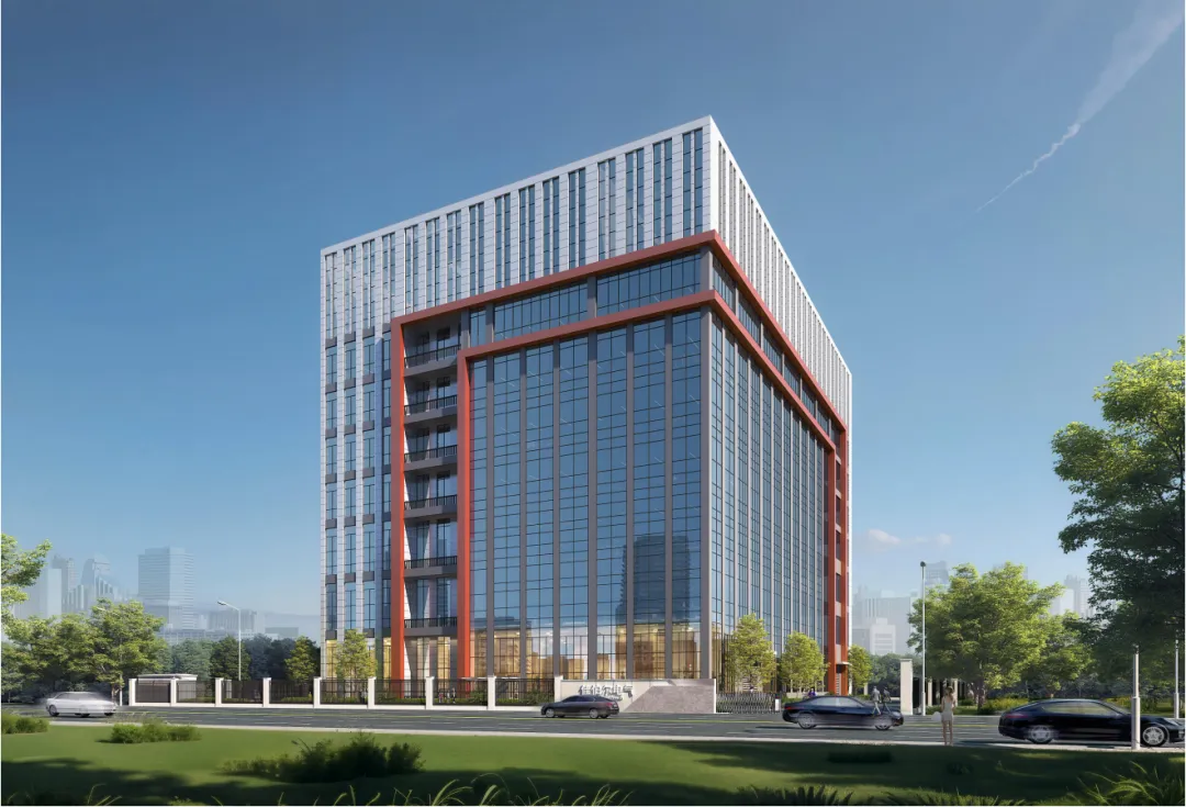 玻璃幕墙 + 橙红色钢结构,彰显工业美学