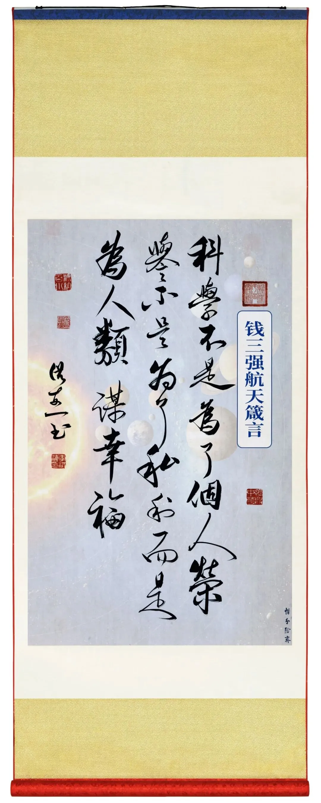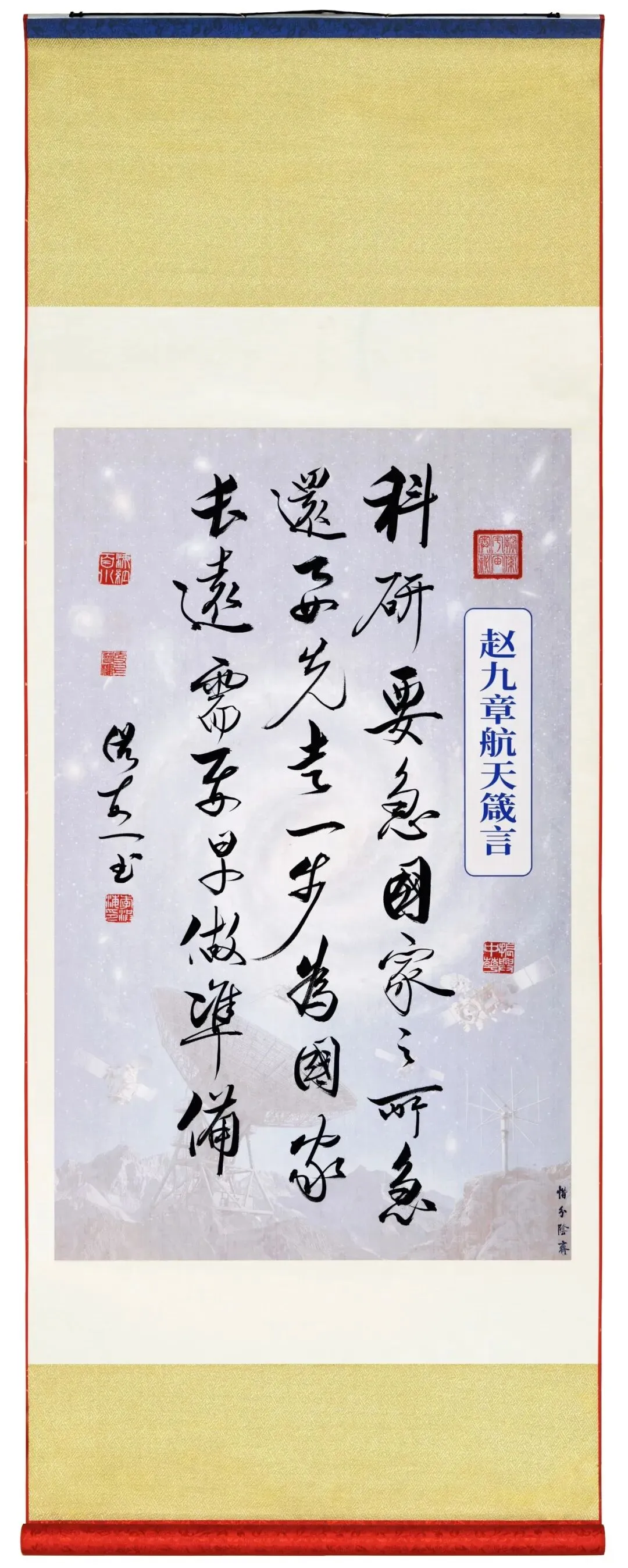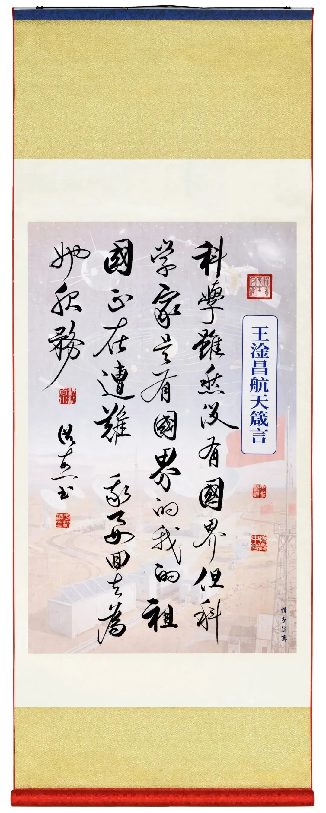 今年是中国航天事业创建七十周年。70年来中国航天事业栉风沐雨、勇毅前行,一代代航天人以深厚的家国情怀接续奋斗,在浩瀚苍穹创造中国奇迹,铸就不朽的航天丰碑。书法家李洪海以笔墨为媒,融翰逸神飞的书法艺术与波澜壮阔的航天梦想,串联起航天梦的文化血脉,以航天精神铸造航天文化精品。让航天强国的宏大篇章转释为可感、可思、可赏的件件艺术作品愿我们共同在笔墨间感悟航天人的初心使命,弘扬伟大航天精神,为筑就航天强国梦贡献智慧和力量。感谢您支持,谢谢您的关注和分享!