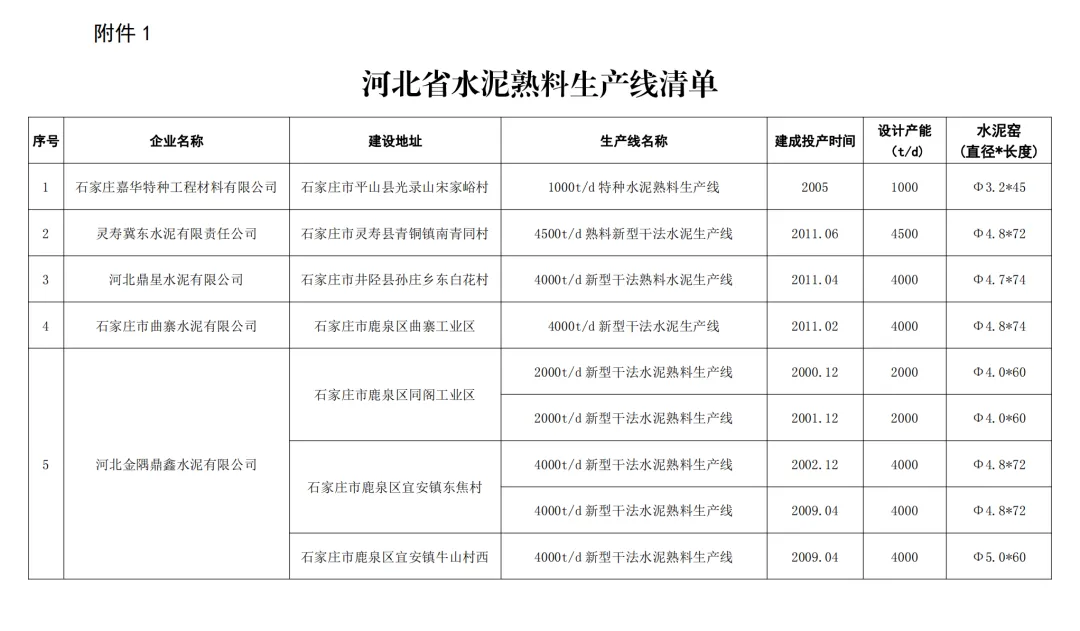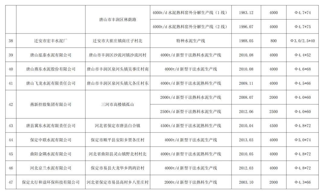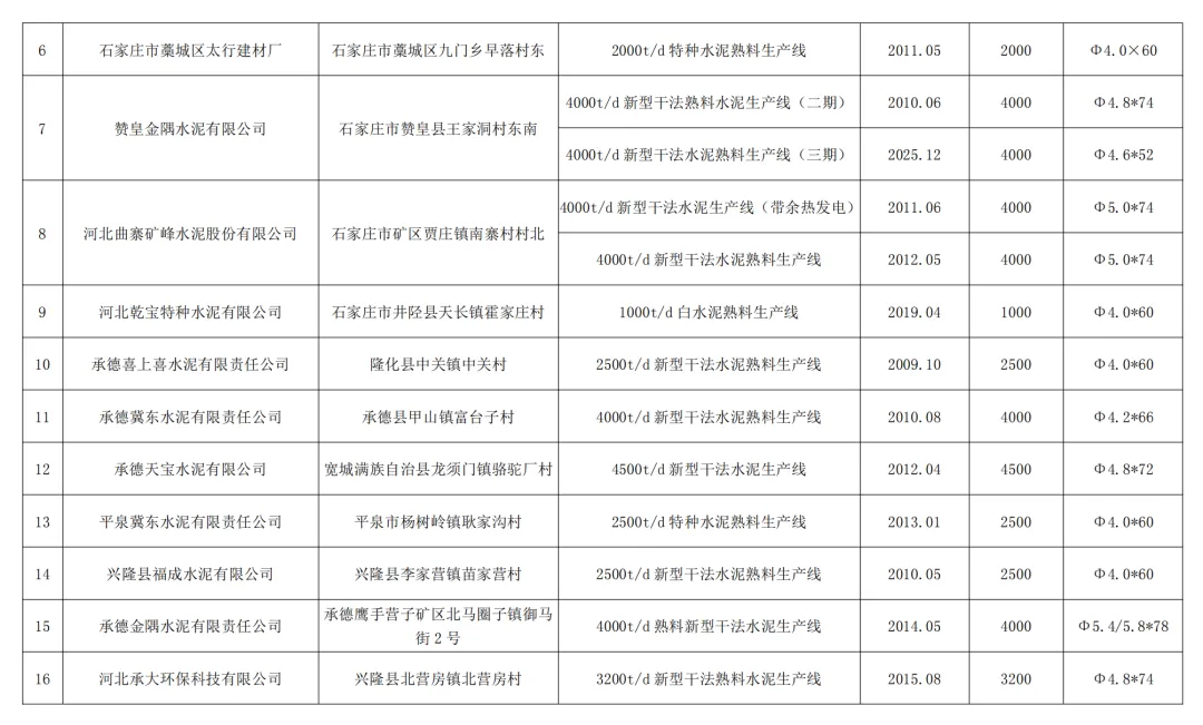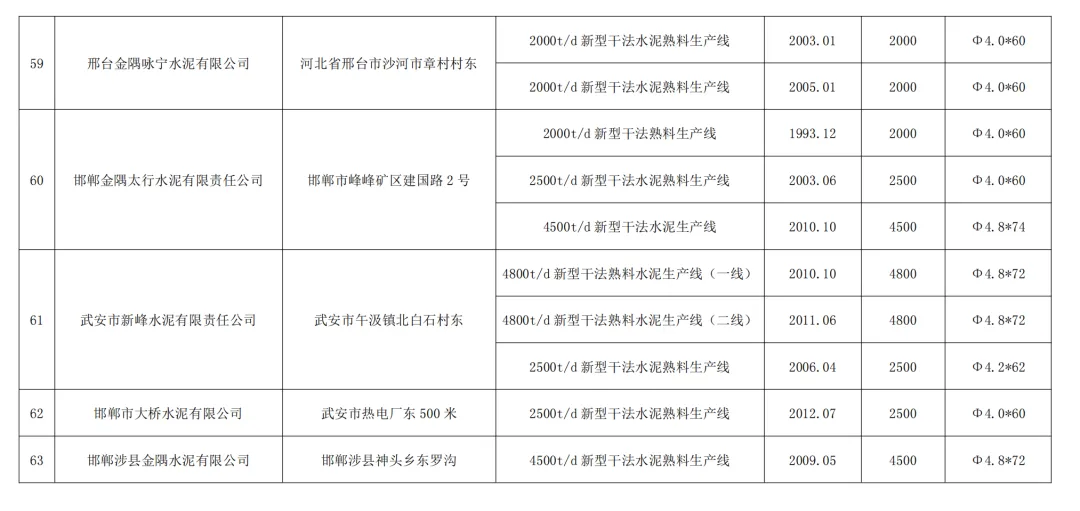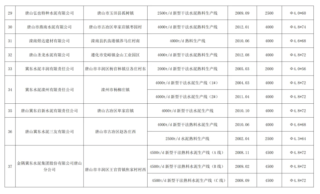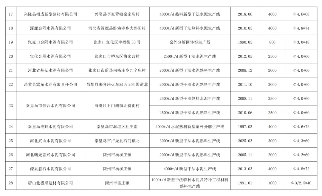 1.河北武山水泥有限公司(秦皇岛市卢龙县):3000t/d新型干法水泥熟料生产线,投产时间2025年3月,窑规格Φ4.3×60。