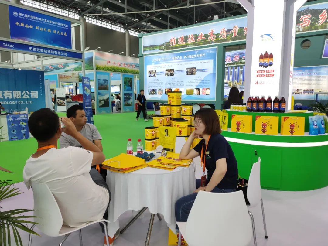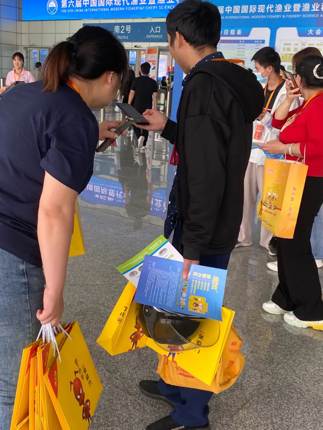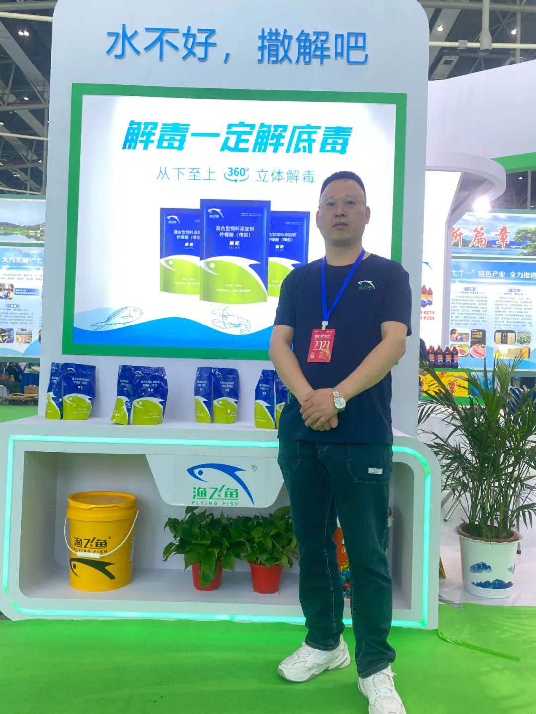 叮~展位打卡好动保 质在渔飞鱼徐剑锋会长莅临指导中国渔业协会水产动保分会会长徐剑锋来到了参观渔飞鱼的展位和产品,渔飞鱼水产申总对公司定位、产品优势、售后服务等进行全方位介绍,徐会长听后也对渔飞鱼给予了极大的肯定!合影展位人潮汹涌A GROUP PHOTO与客户合影展会尚余1天,精彩仍在继续,现场观众依旧火爆!还是这个位置,还是2号馆T43。没有来得及来看展会的朋友们还请抓紧时间来参观洽谈吧!