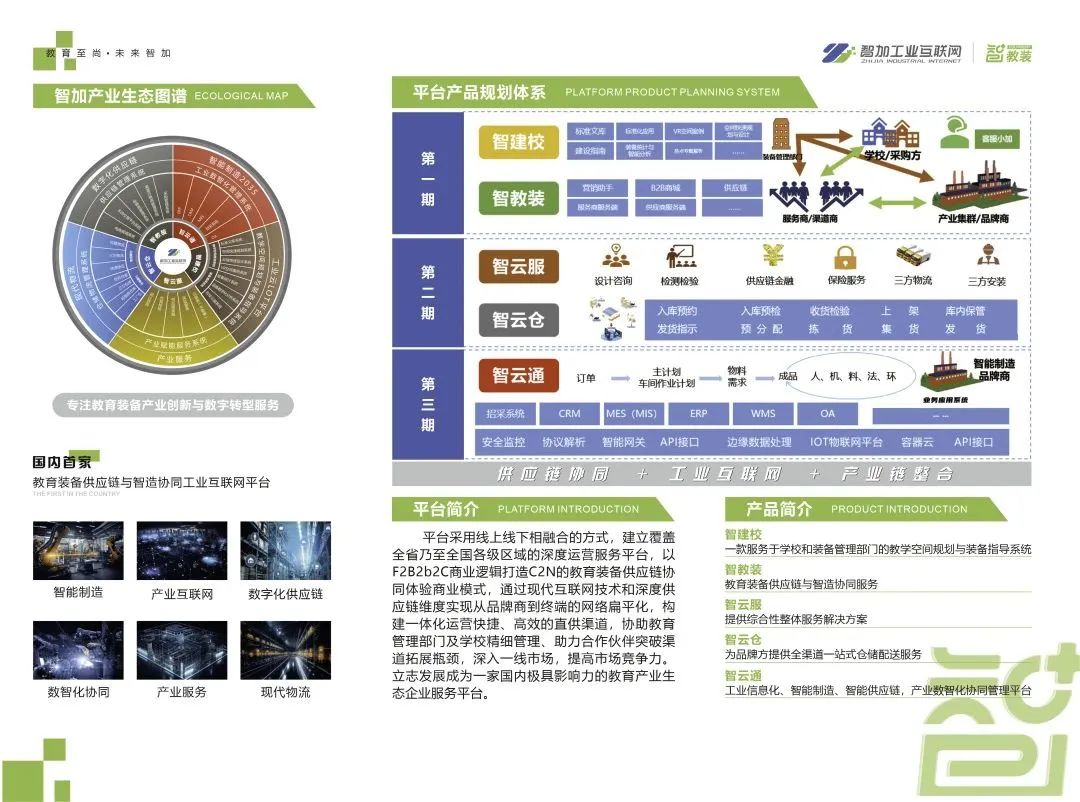 智加工业互联网深入贯彻党的二十大报告中提出的”推进教育数字化,建设全民终身学习的学习型社会、学习型大国”的政策导向,凭借”智建校—教学空间快速规划与装备指导系统“、”智教装—教育装备供应链协同创新系统“及系列教育装备产业协同创新平台产品在众多优秀教装企业中脱颖而出,一度成为燃爆全场的娇子!