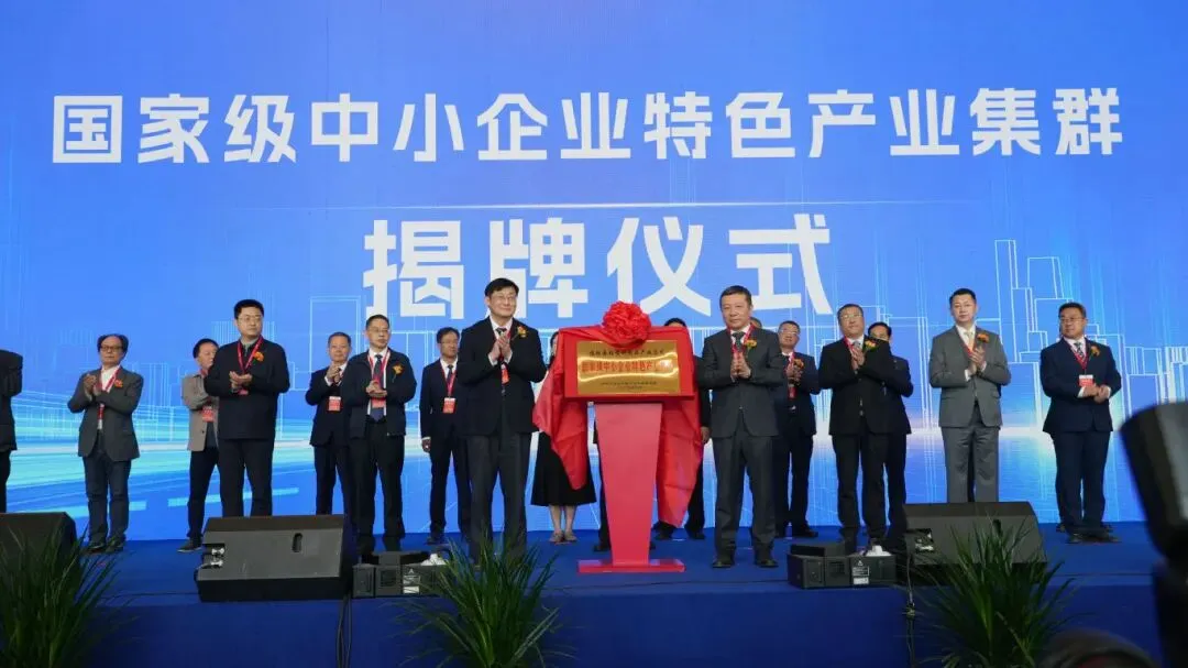 工业和信息化部中小企业局原副司长王建翔、潍坊市人民政府副市长周俊为临朐县铝型材制品产业集群获评国家级中小企业特色产业集群揭牌