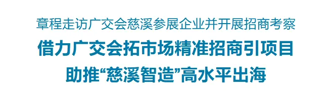 章程指出,广交会作为我国“第一展”、中国外贸的“晴雨表”,也是历来慈溪企业拓展国际市场、展示产业实力、深化对外合作的关键载体。他勉励慈溪广大参展企业,要用足用好平台优势,广泛对接全球采购商,在深耕传统市场的基础上,积极开拓新兴市场,在交流合作中掌握行业发展动态,洞察市场变化趋势。要坚持创新驱动、深耕核心硬实力,以技术创新、产品创新、模式创新筑牢发展根基,不断提升“慈溪智造”的品牌影响力和行业竞争力,为推动慈溪外贸高质量发展、推进高水平对外开放贡献更大力量。