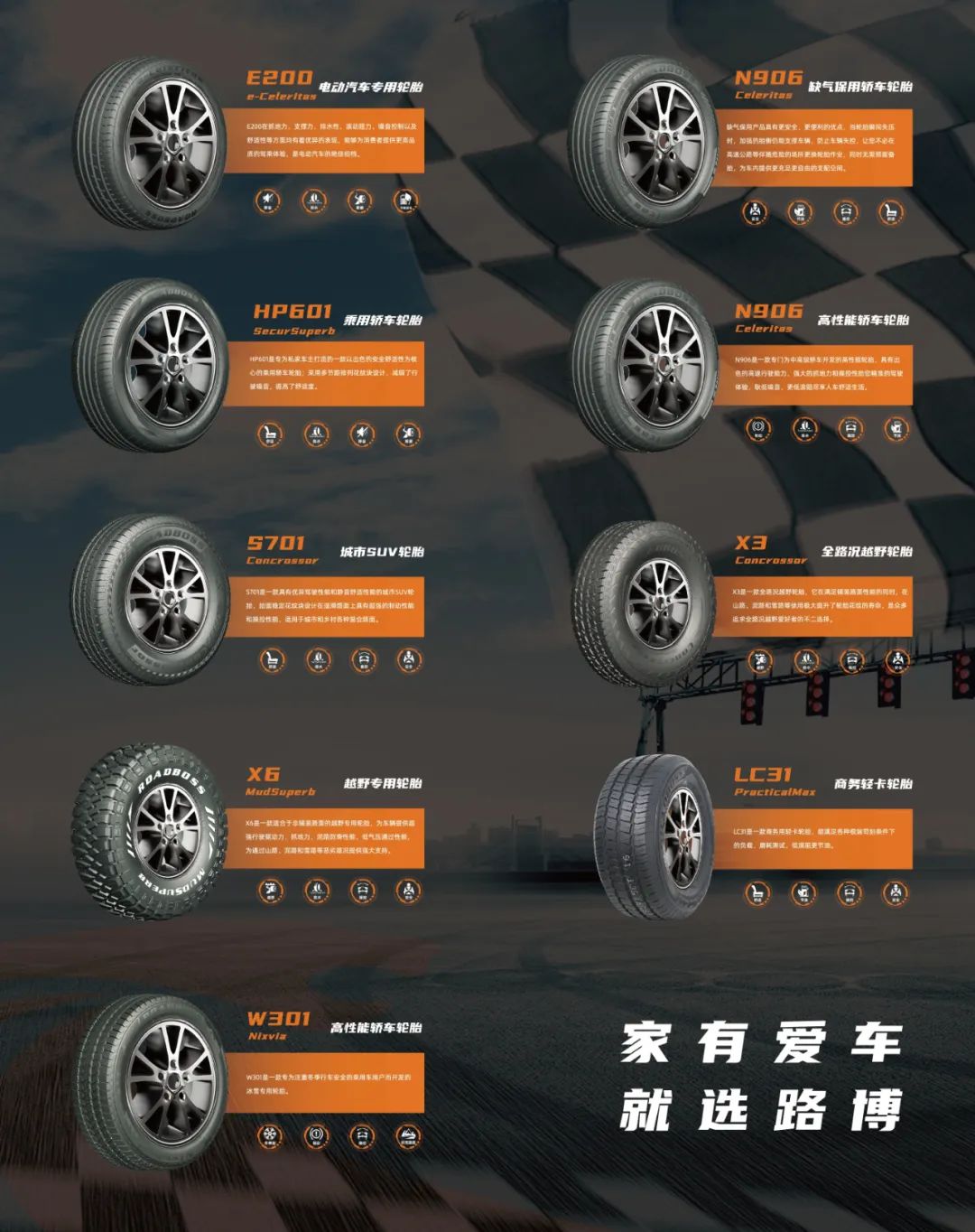为给车主提供更多元化的选择,路博轮胎以坚定的“增品种、提品质、创品牌”的品牌决心,宣告进军“高性能轮胎”市场,推出电动汽车专用轮胎、超静音静音棉轮胎、高端环保耐磨卡客车轮胎、缺气保用轮胎、半热熔全热熔赛车轮胎、超低滚阻轮胎等高端、高性价比产品,先进的技术和突出的性能成为路博轮胎比肩国际大牌的重要筹码。