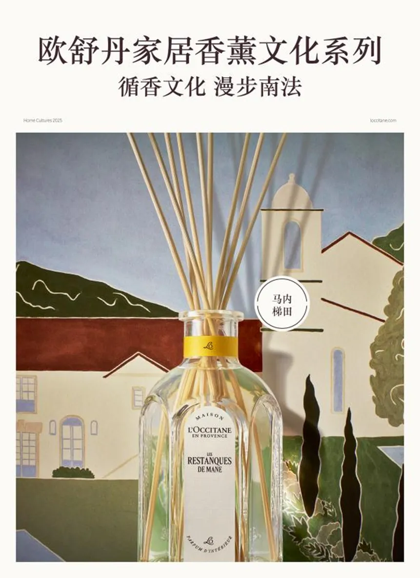 从香气出发,普罗旺斯欧舒丹全新文化系列家居香薰不仅为家注入南法气息,更让日常空间成为疗愈身心的温柔角落,在每一次呼吸之间,感受从容而有质感的家居生活。