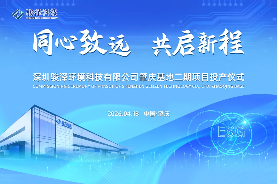4月18日,深圳骏泽环境科技有限公司(简称“骏泽科技”)肇庆基地二期项目投产仪式隆重举行。来自政府部门、行业协会及合作伙伴的代表齐聚现场,共同见证这一重要时刻。