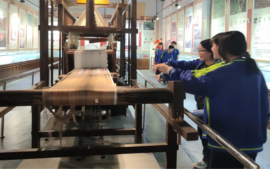 在这里,同学们仿佛穿越了千年的时光隧道。从一颗小小的蚕茧,到华丽精美的丝绸成品,同学们通过实物展陈与影像资料,详细了解了栽桑、养蚕、缫丝、织造的全过程。面对馆内陈列的古老织机与现代工艺的丝绸精品,同学们惊叹不已,不仅读懂了“一丝一缕恒念物力维艰”的深刻含义,更在心中种下了传承家乡非物质文化遗产的种子。