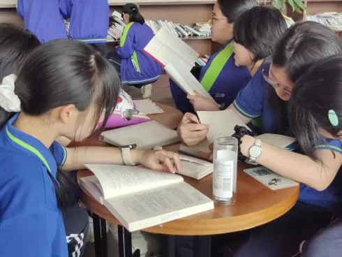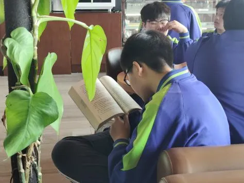 除了丰富的文物展陈与沉浸式的聆听学习,博物馆内的公共文化空间也为同学们提供了一方静心求知的天地。在博物馆的休闲阅读区,不少同学被书架上琳琅满目的历史文化书籍所吸引,他们或独自静坐,手捧一本《南充文物志》细细品读,在字里行间与历史对话;或三两结伴,轻倚书架低声交流阅读心得。翻动的书页声与展厅内的静谧氛围交织,构成了一道最美的阅读风景线。除了丰富的文物展陈,博物馆内的公共文化空间也为同学们提供了一方静心求知的天地。
