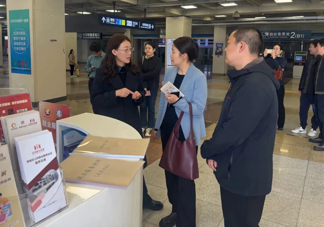 北京北站地区就业服务站是全市首个交通枢纽就业服务站,构建 “枢纽引流 + 精准匹配 + 专员跟进” 一体化服务模式,实现 “出站即对接、到站可择业、服务触手可及”,有效打通就业服务 “最后一公里”。调研组来到北京北站地区就业服务站,听取站点建设汇报,查看岗位展示大屏、预约服务专区,详细了解岗位归集、智能匹配、政策宣传等细节,以及站点场景化升级、规范化运营情况,并对这一创新模式及工作成效给予肯定。
