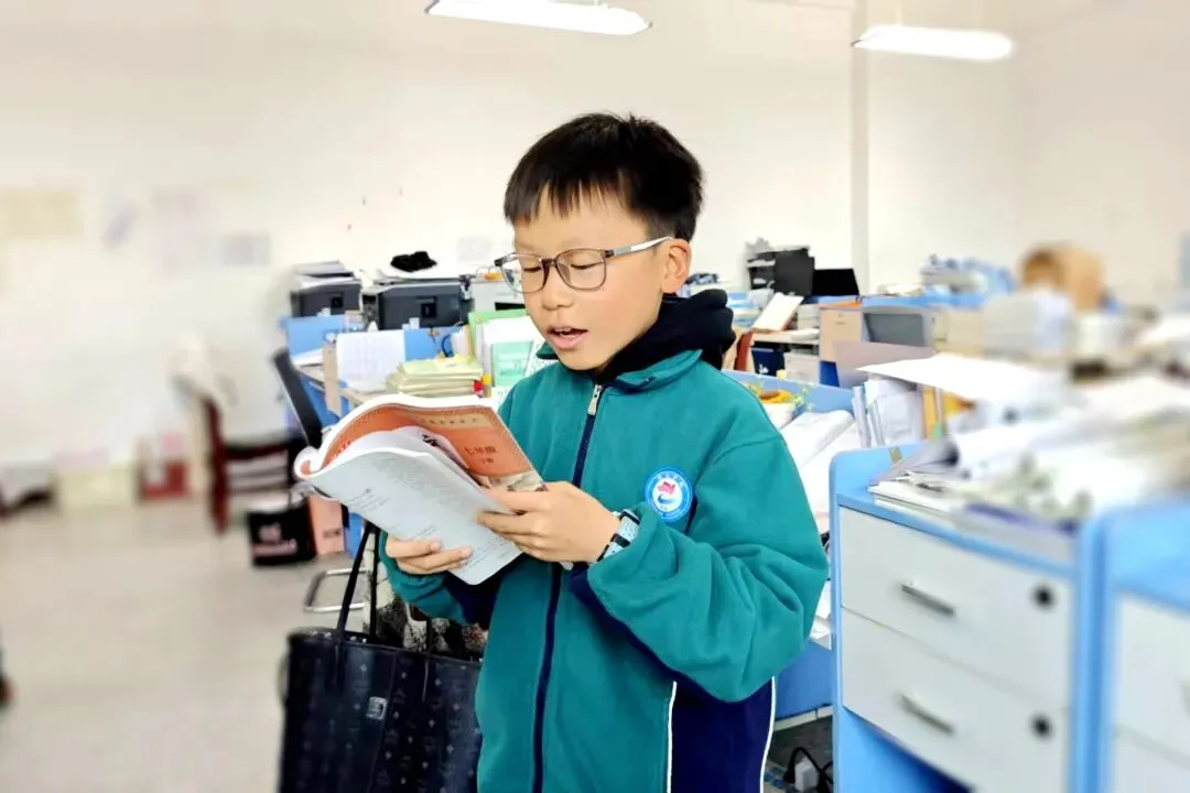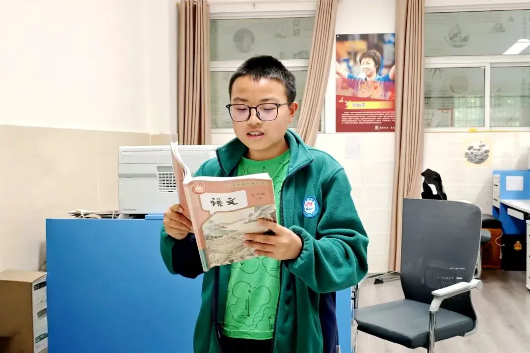 随机抽人朗读:第3周,年级组随机抽取每班2名学生,现场朗读《黄河颂》《爱莲说》《望岳》等经典篇目。短短一分钟准备时间,同学们依然能做到正确流利、声音响亮、情感自然,赢得了评委的一致好评。