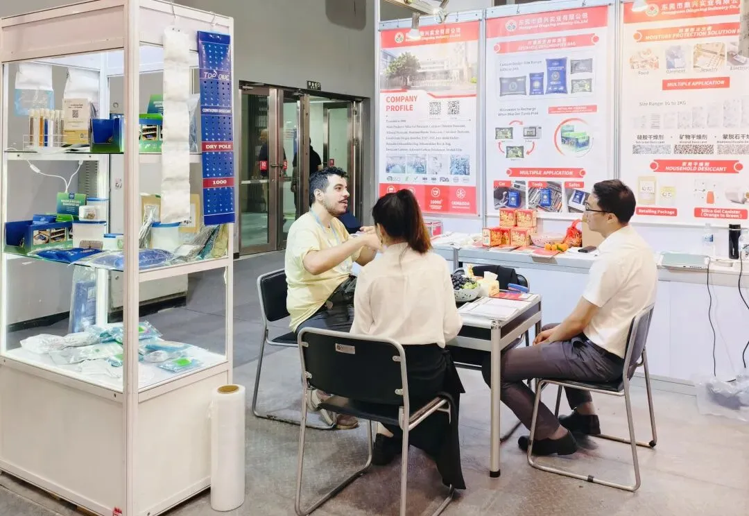 东莞市鼎兴实业有限公司是省级专精特新企业,深耕防潮保鲜细分领域十余年。展会现场,企业展出硅胶、氯化钙、矿物等各类干燥剂及食品脱氧剂、防霉片等产品,品类齐全、性能优异。企业拥有多条全自动生产线,日产干燥剂高达8000万包,明星产品吸湿率高、防潮时效长,凭借多项国际认证畅销全球。