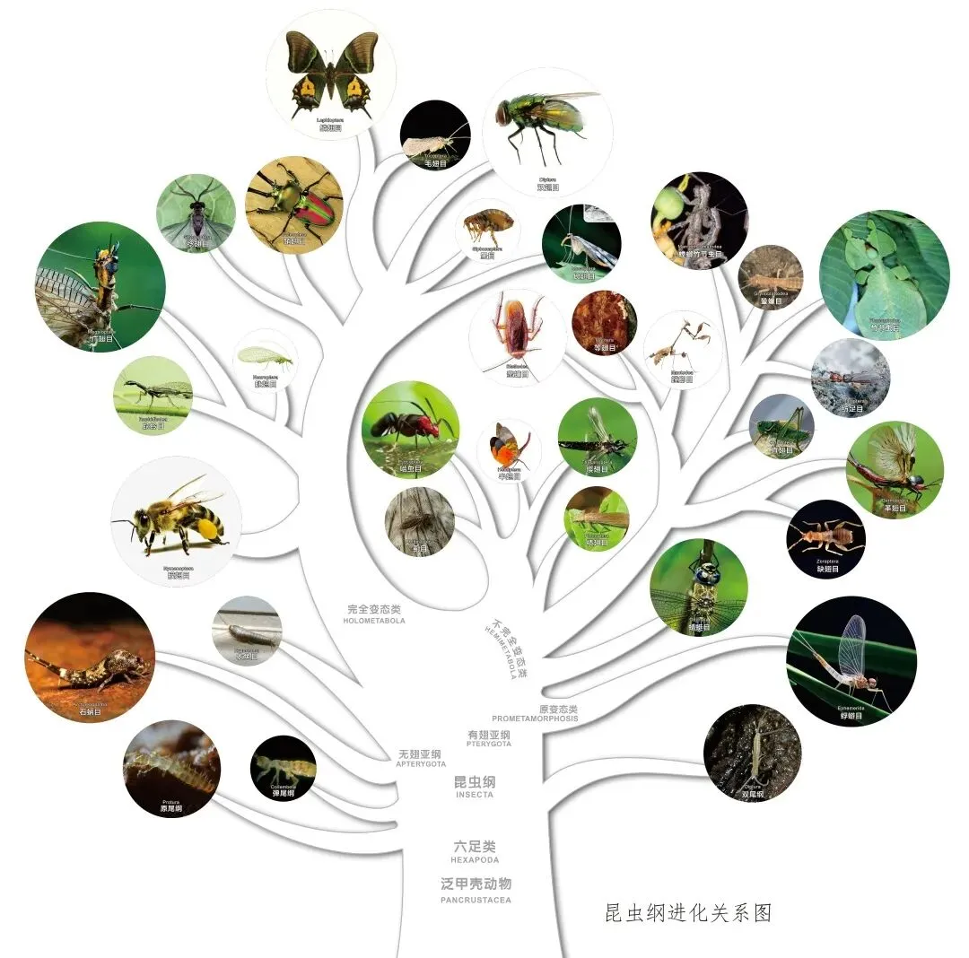 广义上六足动物都归为昆虫,最新研究显示,它们起源于泛甲壳动物,细分还有原尾纲、弹尾纲、双尾纲、昆虫纲;昆虫纲又分无翅亚纲(2个目)和有翅亚纲(28个目),家族超庞大!