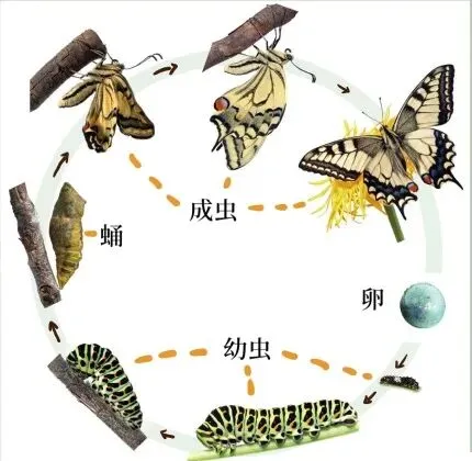 完全变态:经历卵→幼虫→蛹→成虫四个阶段,蝴蝶、金龟子都是这样,毛毛虫变蝴蝶的秘密就在这~