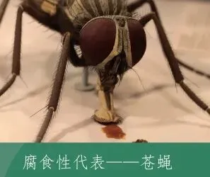 腐食性(17.3%):吃动植物残体、粪便,苍蝇、部分金龟子属于这类。