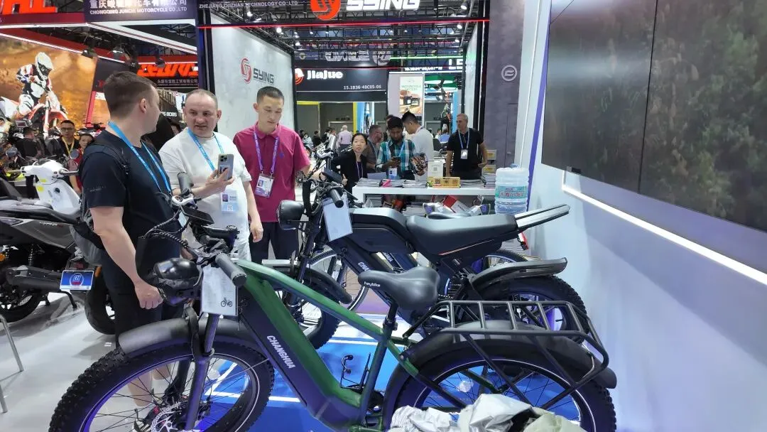 在江门珠峰摩托展区,6 款新品集中亮相,广受外国客商青睐。“此次我们推出非洲市场专用电动车,不以‘高端、炫酷’为方向,主打实用、配件通用,适配当地通勤与载货。” 江门市摩托车产业链党委书记、珠峰摩托副总经理覃斌介绍,该车易损件与燃油车通用,同时配套换电生态,精准解决非洲用电不便、出行需求多元等难题。