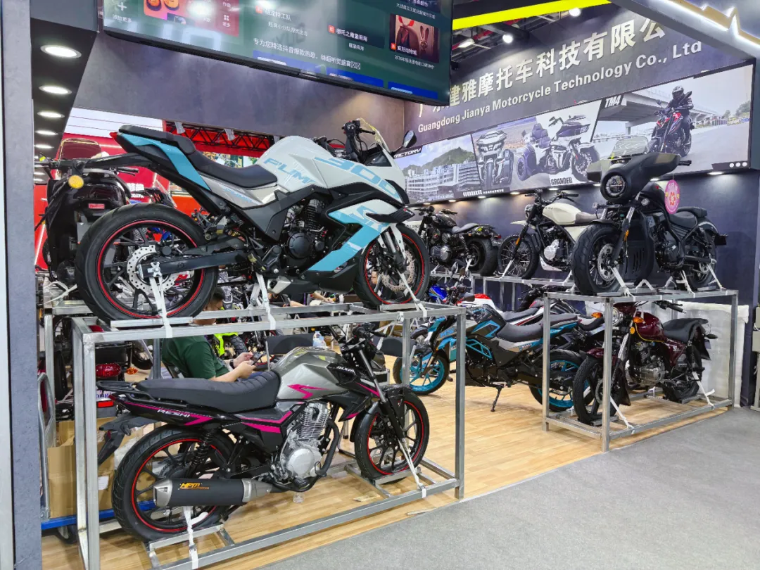 在广交会上,建雅摩托展位20多款车型通过车架上下叠放的方式巧妙陈列,工业风设计感十足。“我们是首次将展位扩大至4个,打造出本届广交会摩托车展区‘得房率’最高的展位,实现最优展示效果,展出的新品覆盖了欧洲、拉美、中东、非洲等全球主流市场。”建雅摩托相关负责人温剑灵表示,今年第一季度建雅摩托订单同比增长超过25%,增长势头强劲。