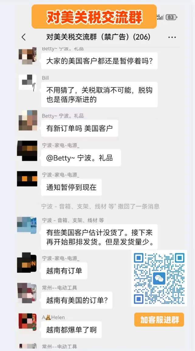 对美关税交流群,仅限外贸公司或工厂加入(提供名片核对)