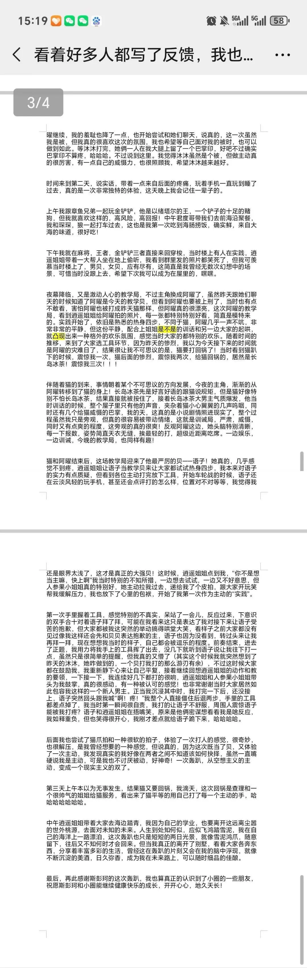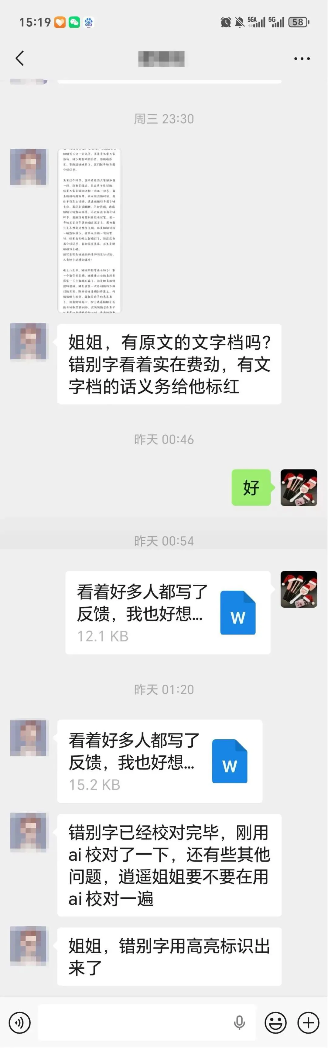 小小黄发来了他的反馈完整版,还记得大家一起找错别字的那一条吗?我特意要了个wold文档版,不知道为啥吧,是为了方便小伙伴找错别字,如图二哈哈哈