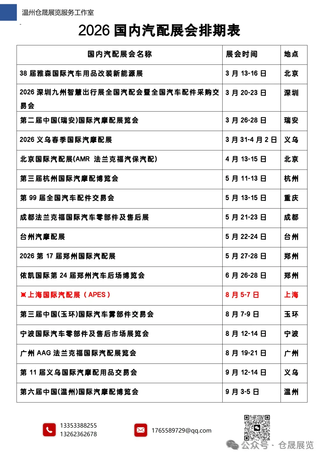 如果您有参展需求,想了解全国各类汽配展详情,或是需要定制专属参展方案,欢迎随时联系我们,我们将竭诚为您服务!