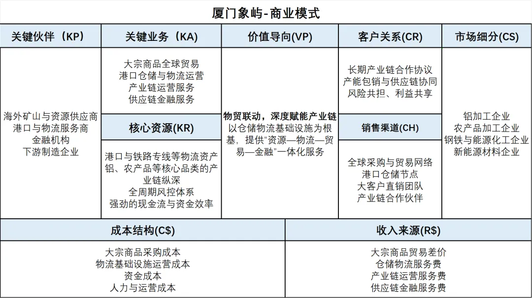 企业画像:物产中大(600704.SH)是中国供应链集成服务的引领者、首批国家级供应链创新与应用示范企业,已连续15年位列《财富》世界500强,2025年排名第149位。2025年前三季度,公司实现归母净利润30.51亿元,同比增长30.87%,净资产收益率提升至7.38%,位居行业第一。2025年上半年,公司智慧供应链集成服务板块营收达2656.10亿元,占总营收的92.05%。落地案例:物产中大在金属材料领域通过与上游矿山签订长期供货协议保障资源稳定,为中游钢厂提供原材料保供、产能匹配、产品包销等一体化服务,为下游制造业客户提供定制化加工配送、VMI库存管理等增值服务,形成覆盖“原料—生产—产品—终端”的全产业链闭环。在能源化工板块,依托舟山自贸区开展原油进口、保税仓储、转口贸易等业务,已形成覆盖华东、辐射全国的能源供应链网络。模式特色:物产中大的核心差异化在于“一体两翼”的协同效应——智慧供应链集成服务是主体,金融服务和高端制造是两翼。公司不是简单的贸易中间商,而是深度嵌入产业链各环节的“产业组织者”,形成了“贸易+服务+金融+制造”的复合型盈利模式。2. 厦门象屿:物贸联动的高增长型服务商