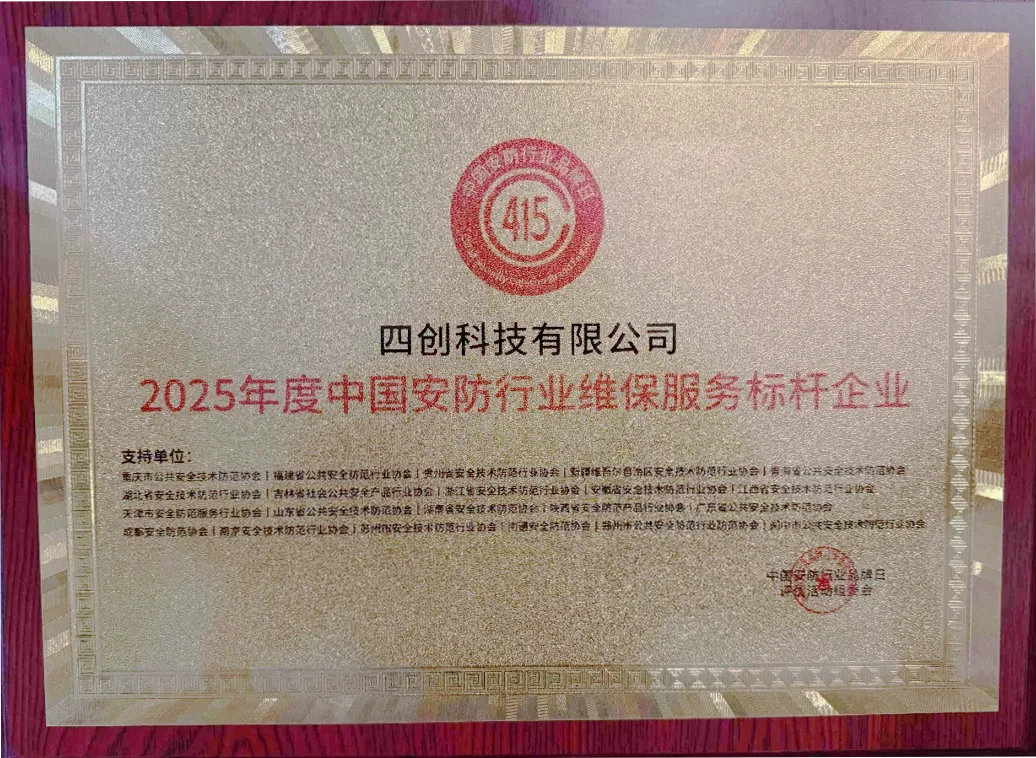 4月15至16日,以“智驭新程·共生跃迁”为主题的2026年中国安防行业品牌日在重庆市隆重举行,同期举办2026年安防品牌日评优活动颁奖盛典。四创科技应邀出席,并凭借卓越的技术实力与行业影响力荣获“2025年度中国安防行业维保服务标杆企业”称号。