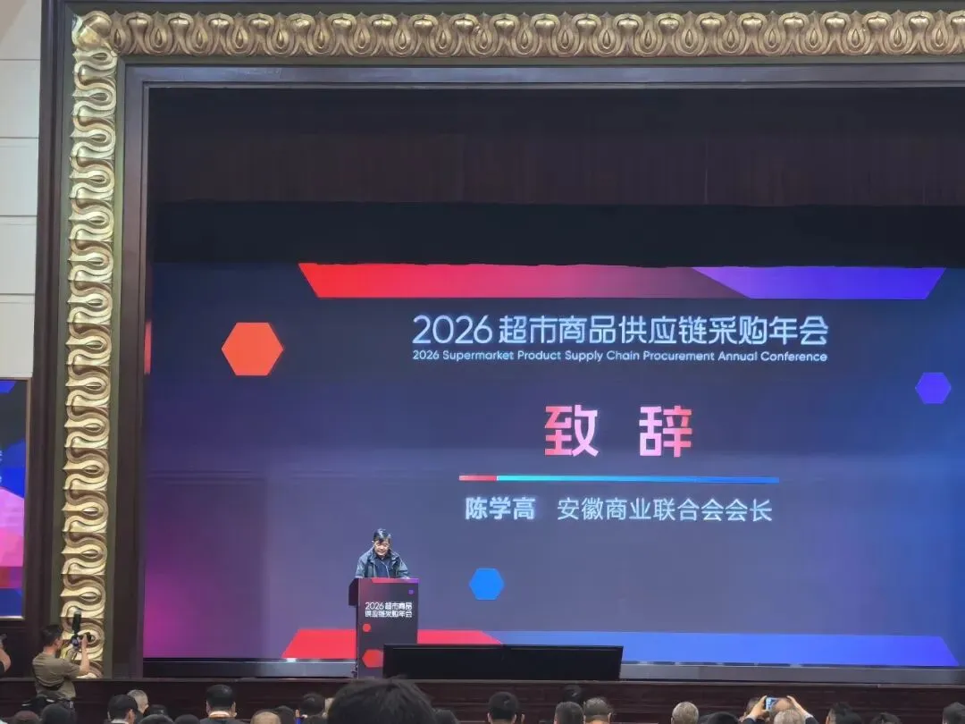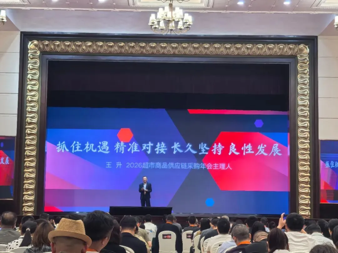 很荣幸能与各位商界的同仁齐聚中原腹地河南郑州,共赴2026超市商品供应采购年会。我相信在座各位每年都会参加全国各式各样的展会,其中不乏规格高、规模大的展会,但像王升同志领衔承办的超市采购年会这样真正注重实效的展会并不多。