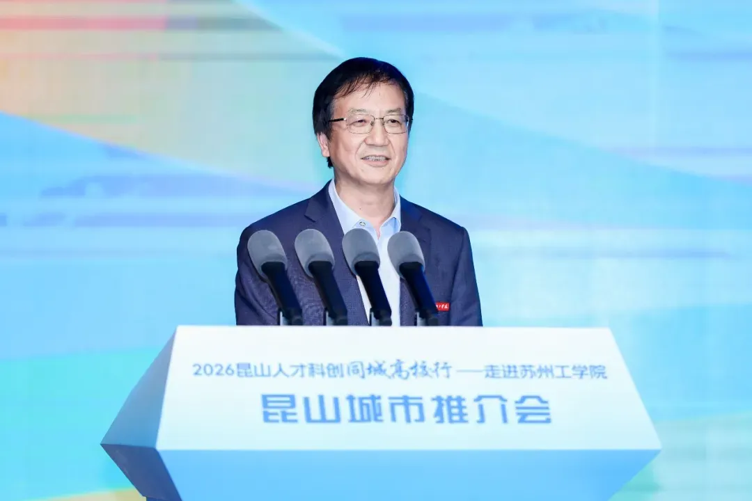 姜建明校长代表苏州工学院对来校参加活动的各位领导、嘉宾和企业代表表示热烈欢迎,对昆山市长期以来给予学校事业发展的关心支持表示衷心感谢。他表示,一直以来,苏州工学院与昆山保持着良好的合作关系。期待以此次活动为新起点,进一步推动校地合作向更深层次拓展,在人才培养上更加契合、在科技创新上更加协同、在人才交流上更加深入,携手构建更加紧密的校地共同体,共同书写教育、科技、人才一体推进的新篇章。