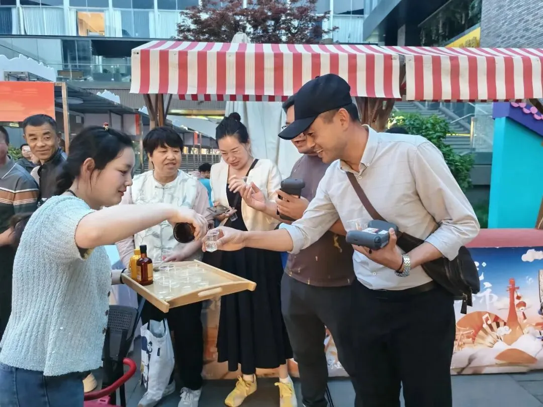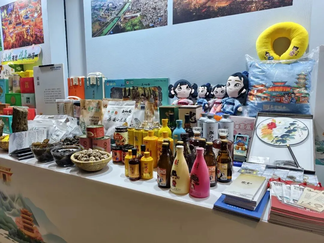 展示区内,房县黄酒、非遗手工艺品、农特产品等琳琅满目,吸引了众多西安市民和文旅企业代表驻足观赏和咨询。这些产品不仅体现了房县深厚的文化底蕴,也展示了当地在文旅融合方面的创新成果。