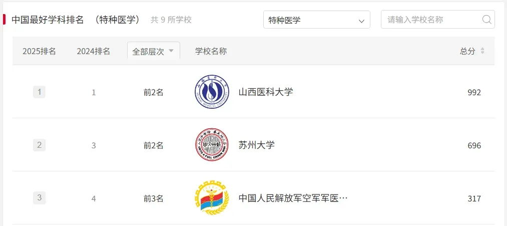 山西医科大学是新中国最早建立核医学专业的高校之一,是全国卫生系“老六所”之一、全国 18所高水平公共卫生学院建设高校之一,是首批经教育部批准建立法医学专业的高校之一,是全国首批恢复儿科学本科专业的8所医学院校之一。