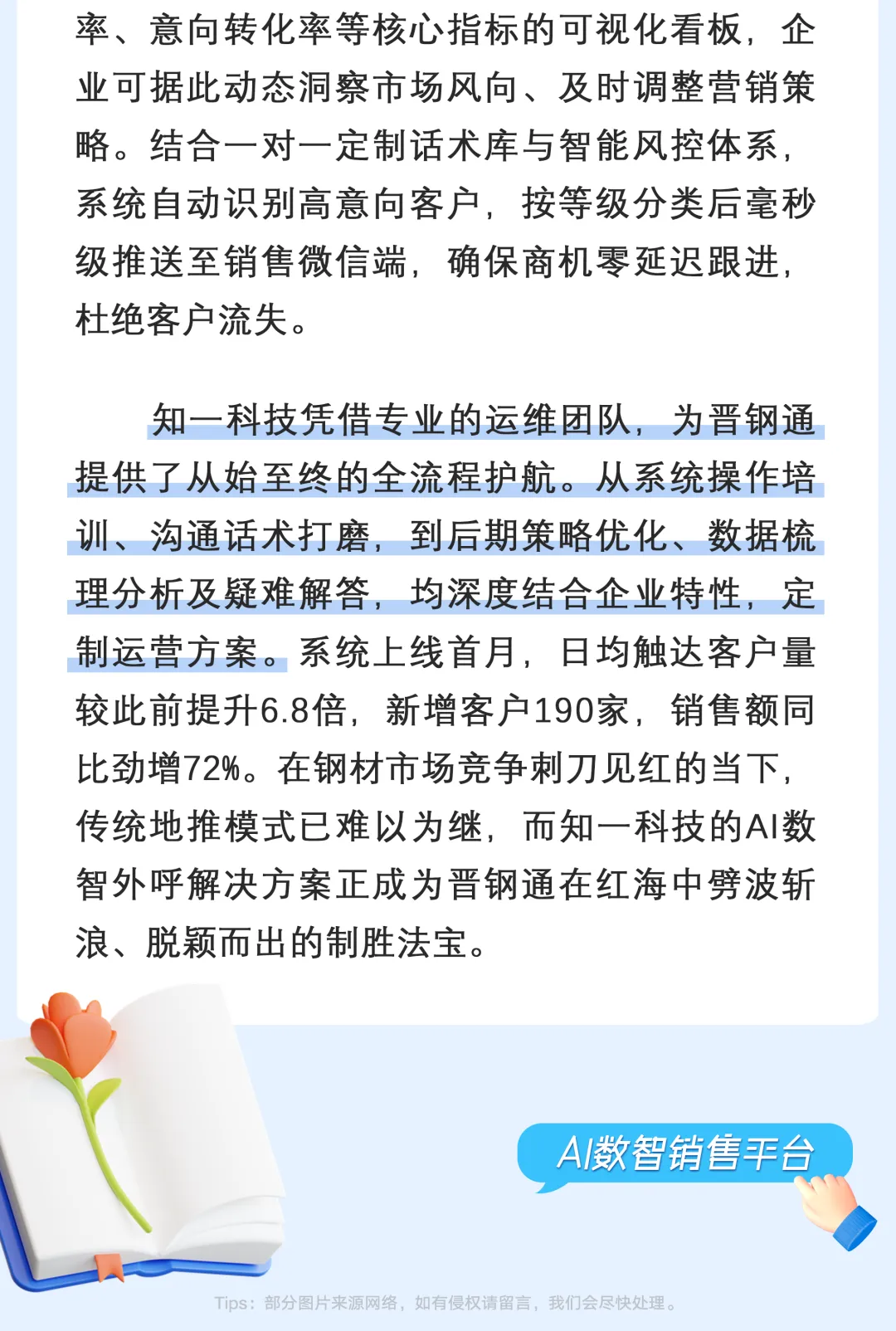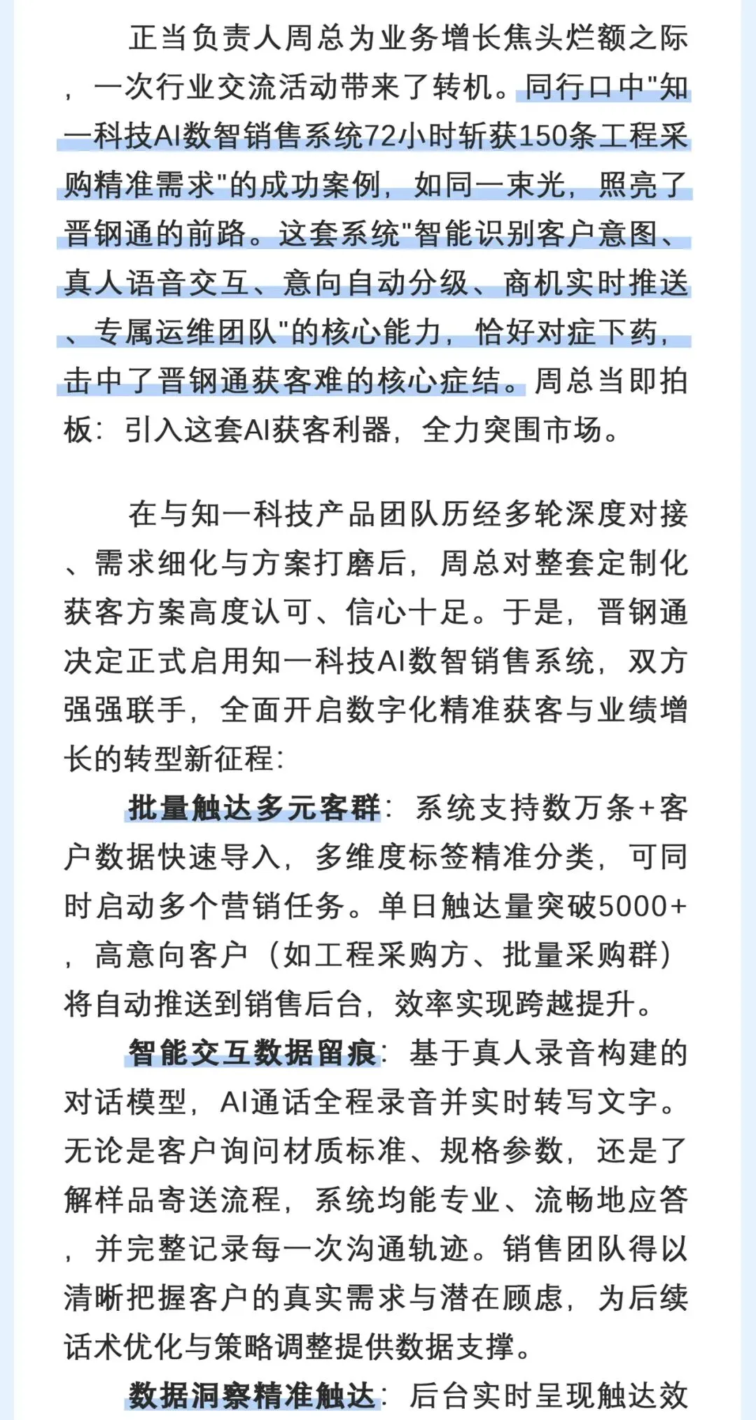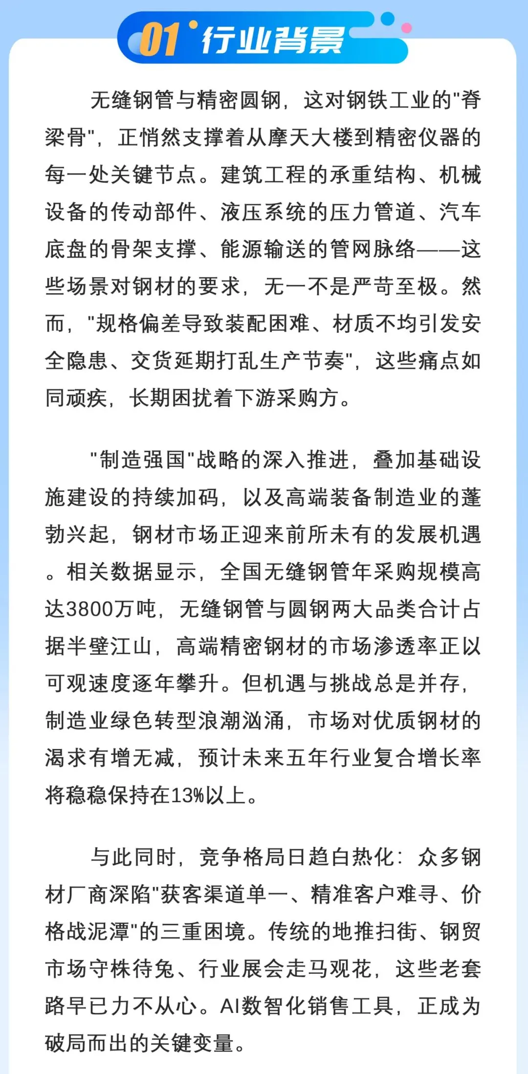日均触达率提升6.8倍,这家钢材生产企业携手知一科技AI数智销售,依托人工智能深耕产业升级,赋能业务革新,开拓高质量发展新赛道.