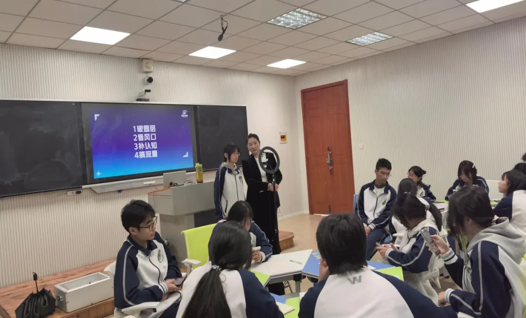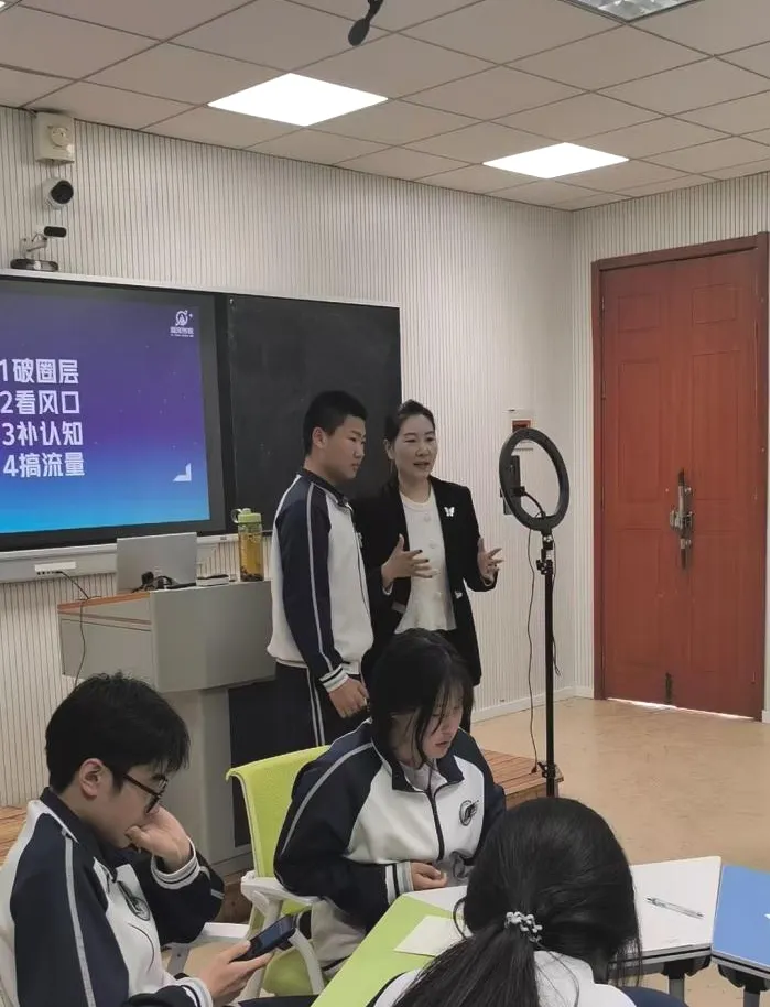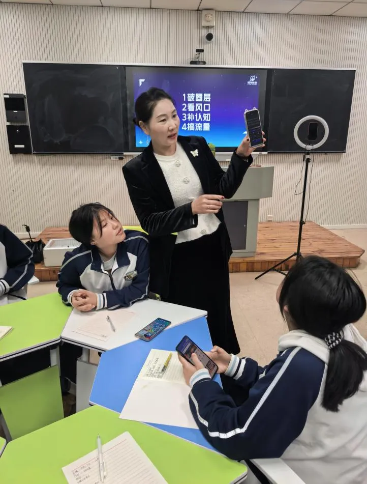 课堂上,崔老师立足行业前沿解读直播电商行业发展前景与就业岗位方向,助力学生规划职业路径。实操教学环节,她围绕企业岗位需求,对抖音和视频号账号运营、用醒图制作直播背景、直播引流涨粉、脚本撰写与提词器使用,以及直播表情、肢体语言、话术技巧等全流程内容,进行细致讲解与示范,将一线实操技能传授给学生。