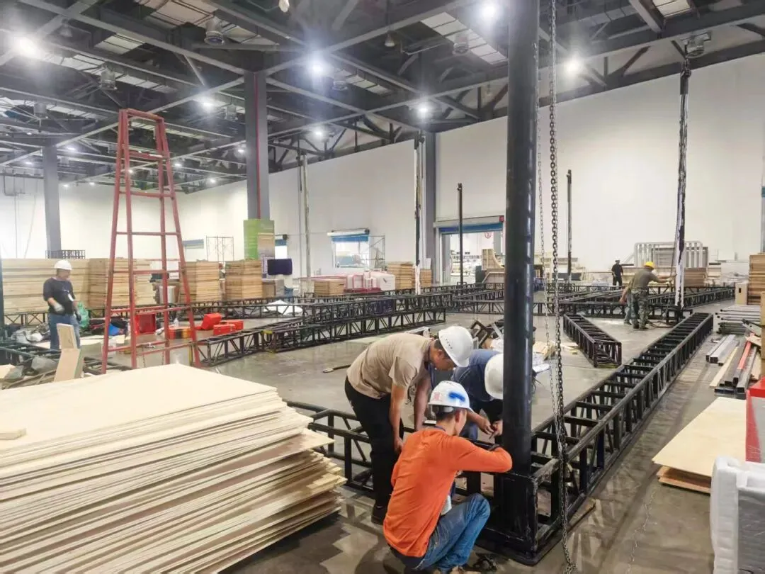 从前期现场精准测量、方案深化设计、图纸严格审核,到中期工厂预制生产、物料统一运输,再到后期现场精细搭建、调试验收,鸿尚会展项目团队全程跟进、实时沟通,及时响应个性化需求,确保展位在开展前以最佳状态呈现。