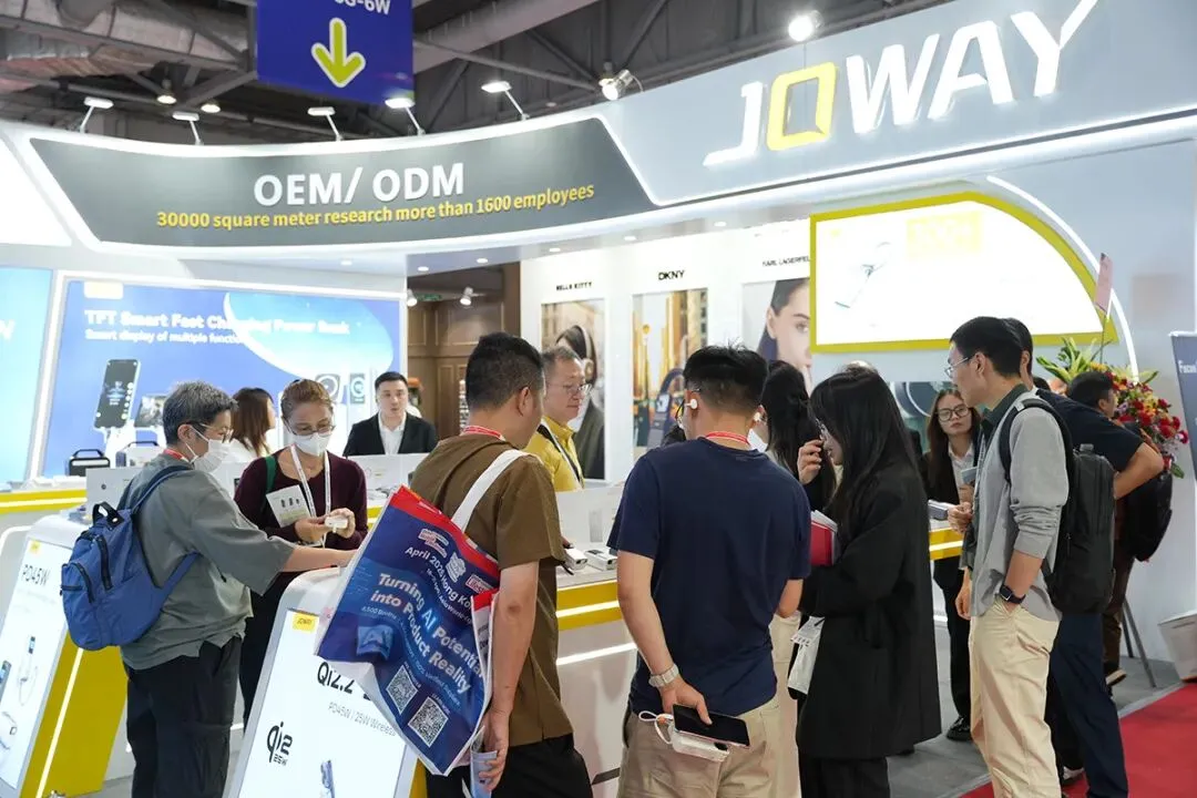 乔威作为本次展会的参展商,携旗下品牌新品及热销品亮相,如:自带伸缩线移动电源、Qi2.2 25W磁吸无线充、带AC插头多功能快充移动电源、大功率快充移动电源等,再一次在国际舞台上展现我们的创新实力与产品优势。展会现场人气爆棚,我们的展位凭借独具特色的产品设计、稳定可靠的产品性能,吸引了众多海内外采购商、行业伙伴的驻足围观、上手体验。不少客商在亲身体验后,对我们的产品品质、创新理念给予了高度认可,主动与工作人员交流咨询。现场,我们的团队以专业、热忱的服务态度,耐心解答每一位来访者的疑问,细致讲解产品的核心功能与应用场景,与新老客户、潜在伙伴深入洽谈合作事宜!欢迎各位新老朋友莅临我们展台,近距离感受产品的魅力,共探移动电子行业前沿趋势、新品技术,携手挖掘市场新机遇!
