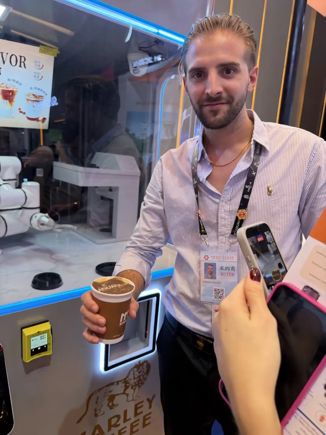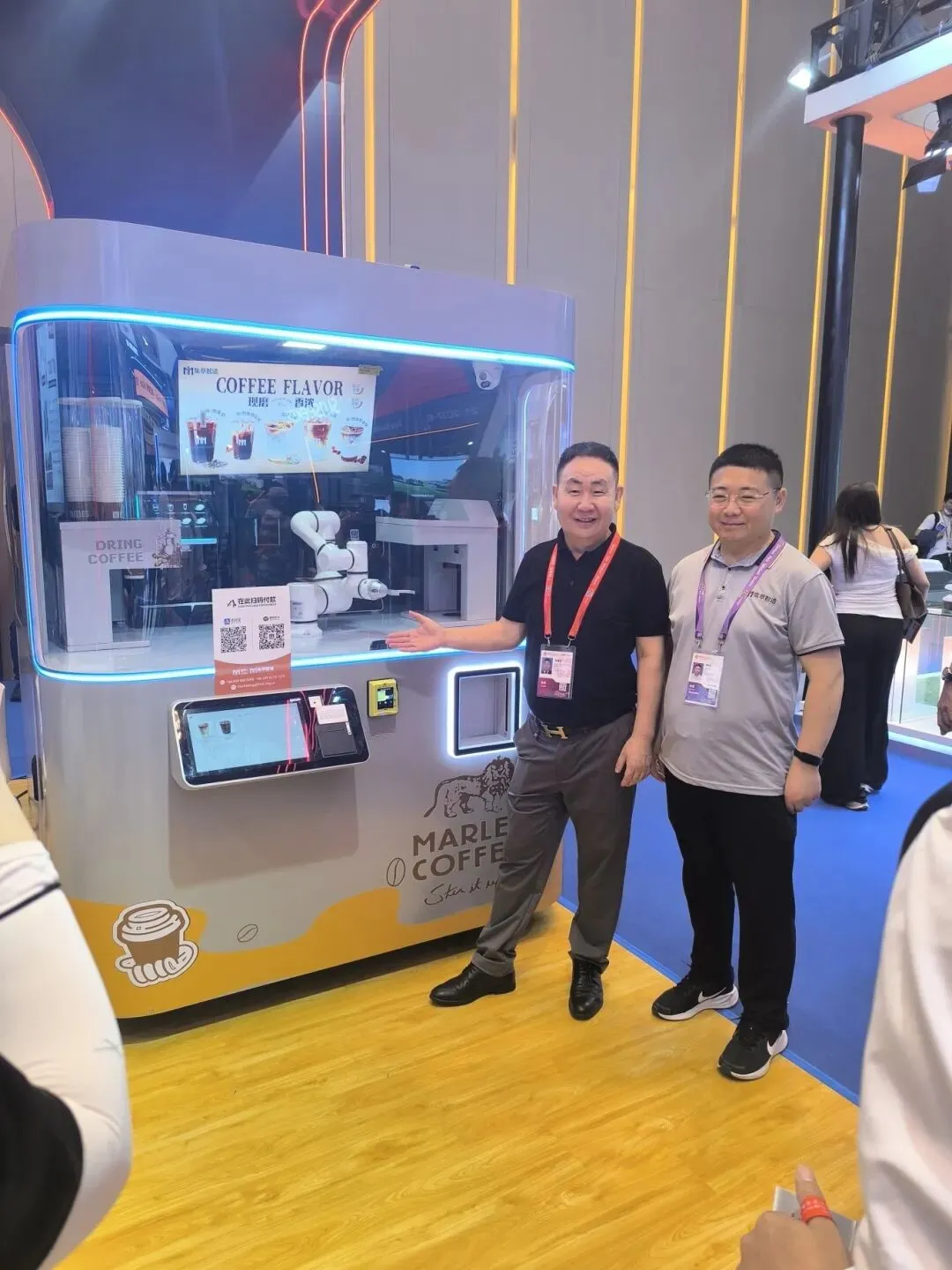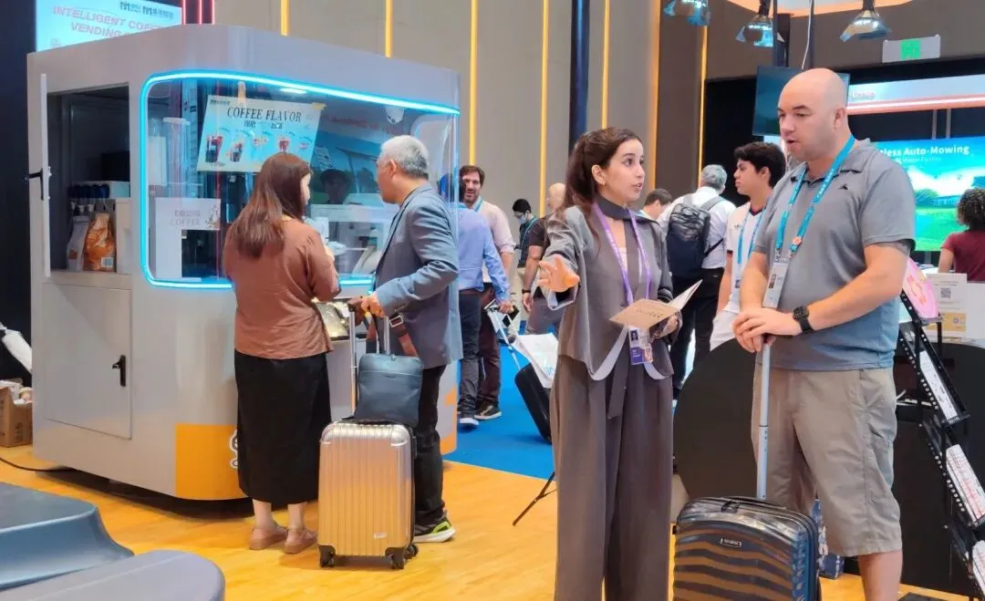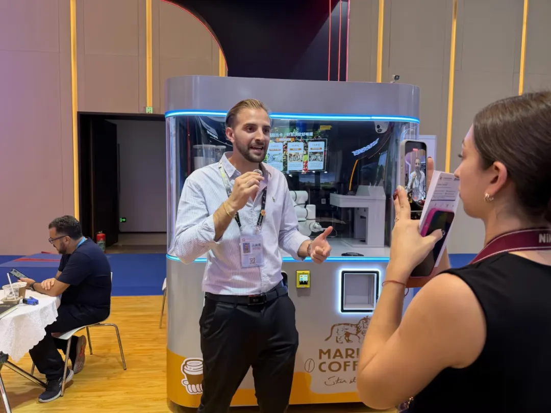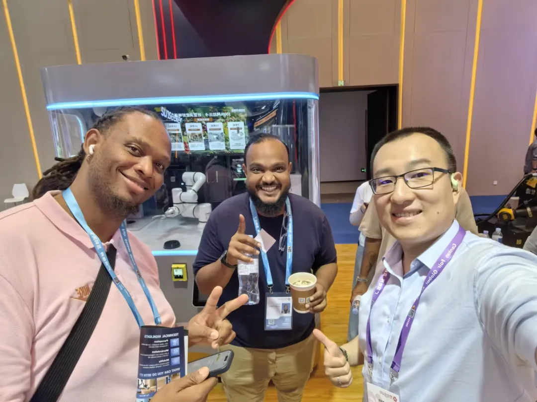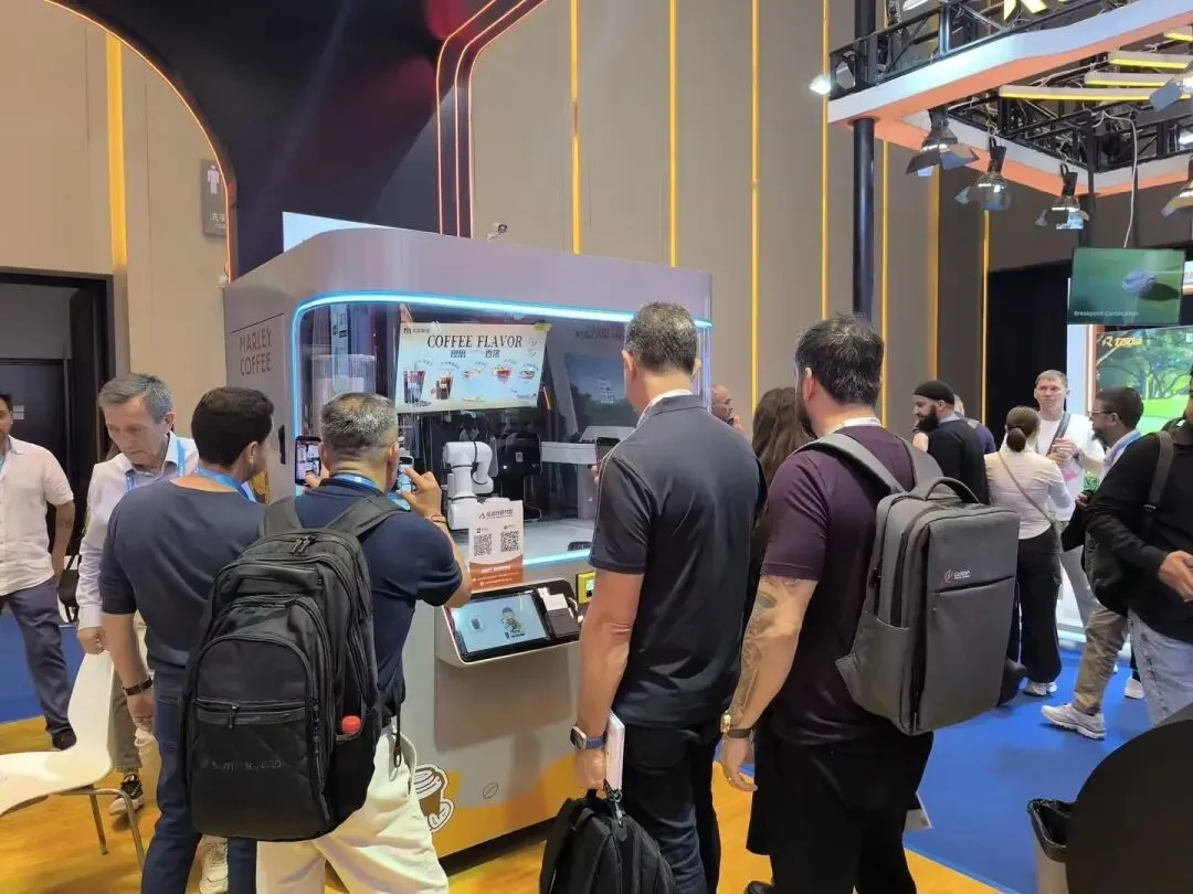 智能AI印花咖啡机器人:展位前人气持续火爆,土耳其、印度、英国、沙特等多国客商纷纷驻足体验。大家纷纷点赞产品口味纯正、科技感满满、外观时尚大气,AI印花功能与多元口味选择更是收获一众好评,不少客商现场表达合作意向。