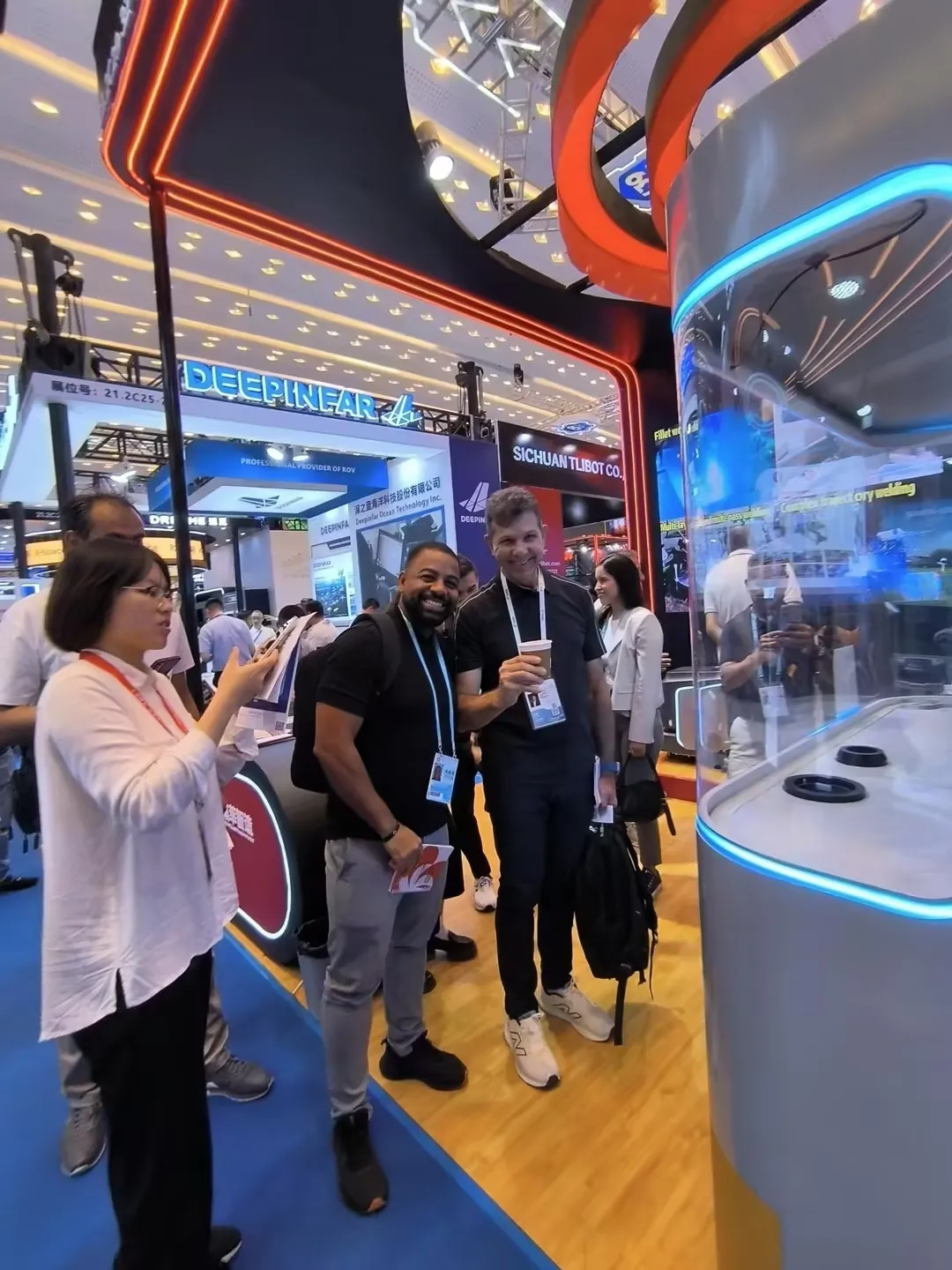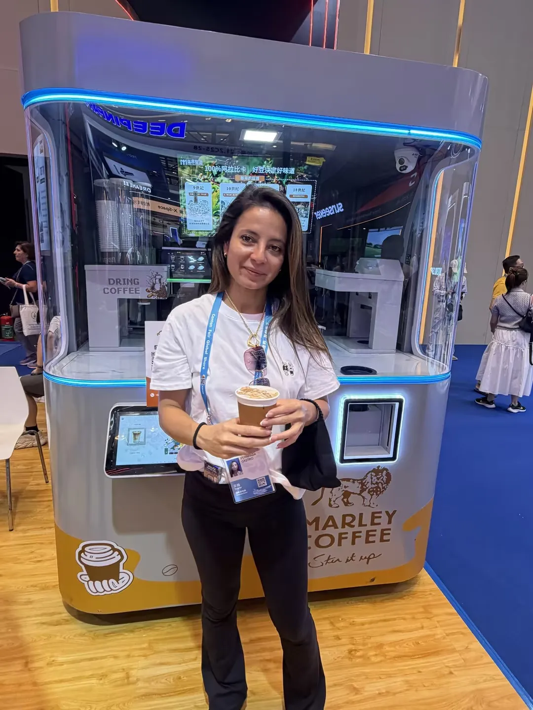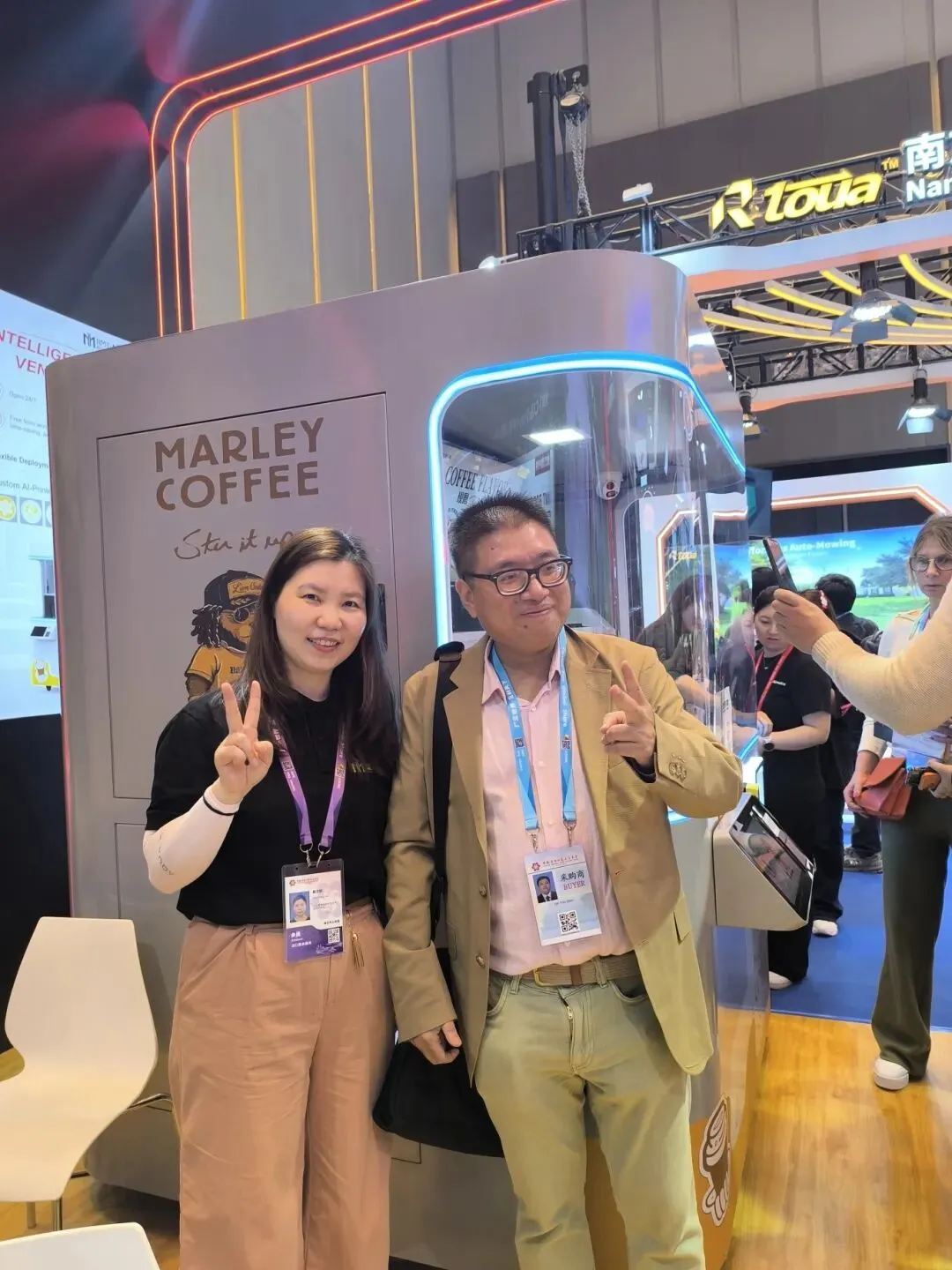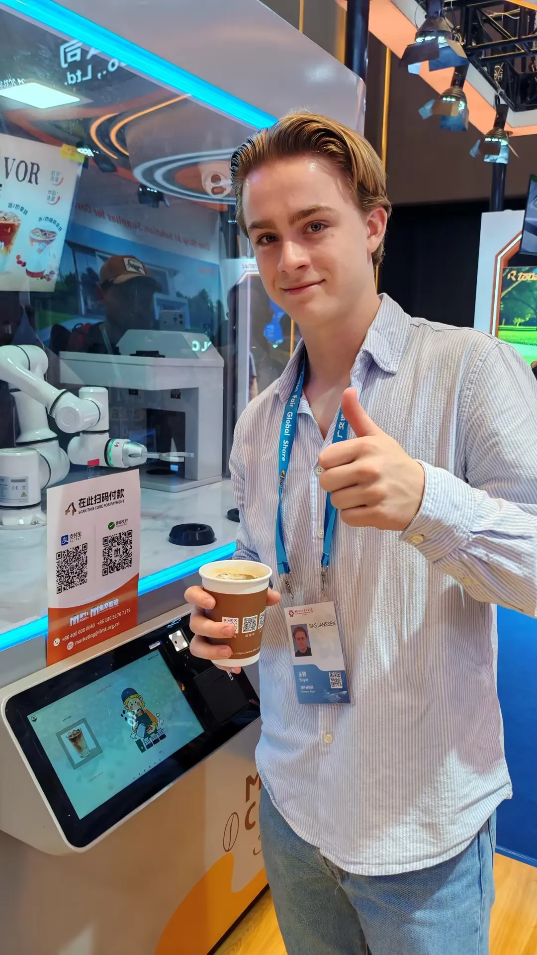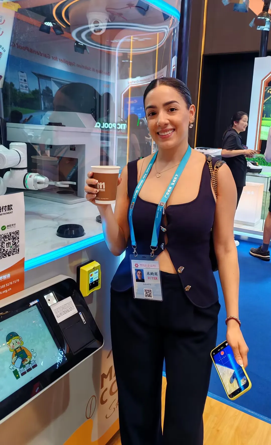 智能AI印花咖啡机器人:展位前人气持续火爆,土耳其、印度、英国、沙特等多国客商纷纷驻足体验。大家纷纷点赞产品口味纯正、科技感满满、外观时尚大气,AI印花功能与多元口味选择更是收获一众好评,不少客商现场表达合作意向。
