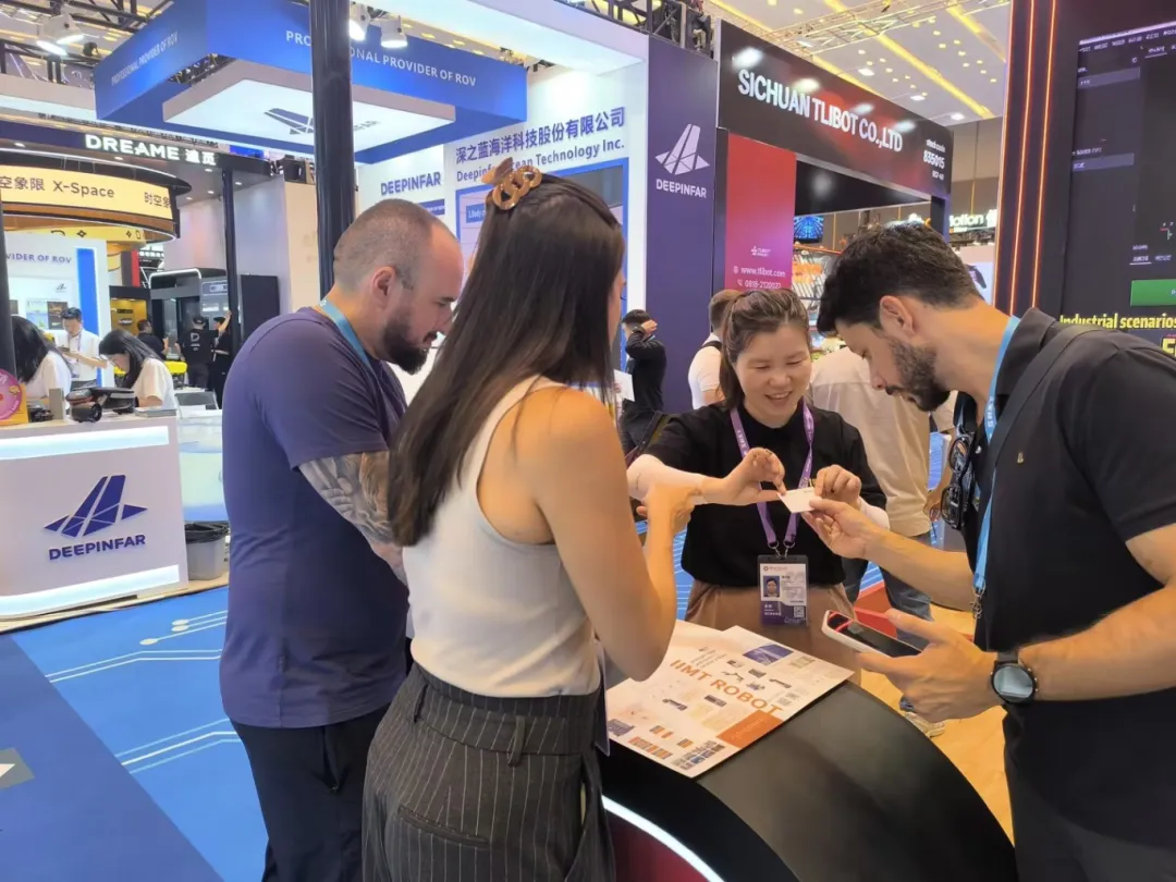 本届广交会集萃智造展位现场人头攒动,三大智能装备凭借硬核性能与创新设计,成为服务机器人专区的热门打卡点,展位累计客流量达2000+。来自全球各地的采购商驻足咨询、亲身体验,现场洽谈氛围热烈: