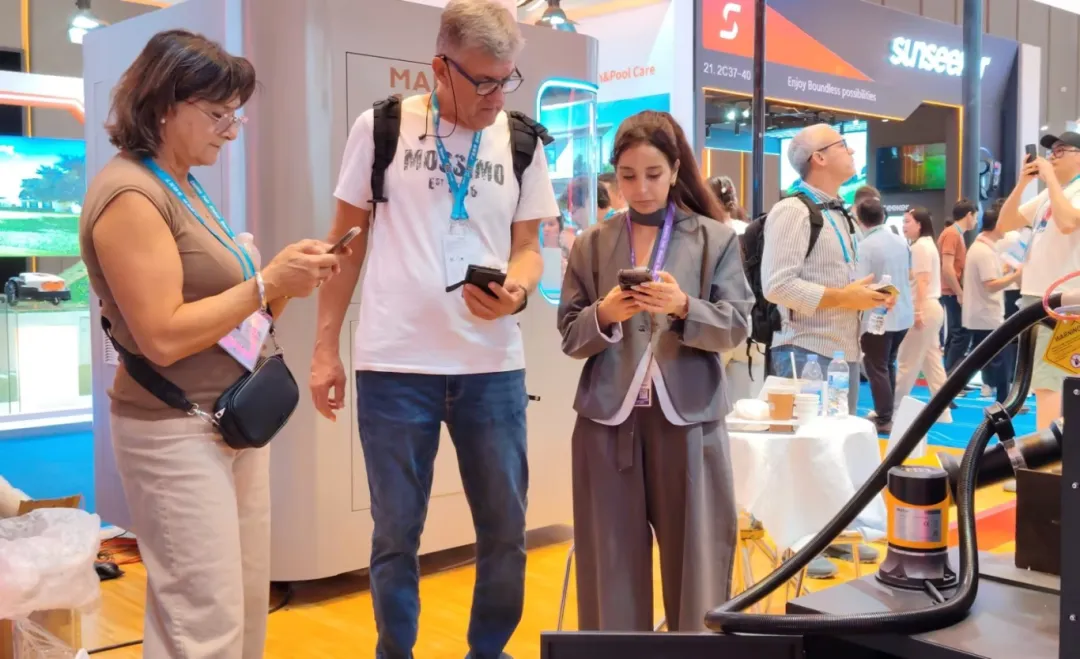 四合一清洁机器人:凭借吸尘、推尘、拖地、洗地一机多用的优势吸引大量客商体验。法国客商亲自上手操作完整流程,直言设备便捷好用、操作简单,适配场景极为广泛,是商用与公共空间清洁的理想选择。