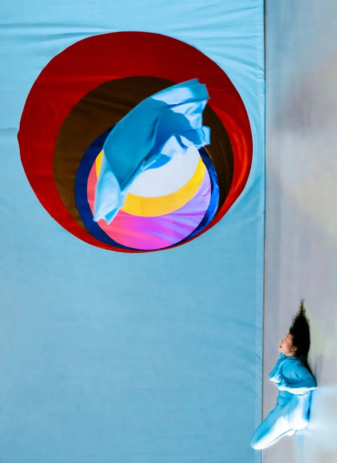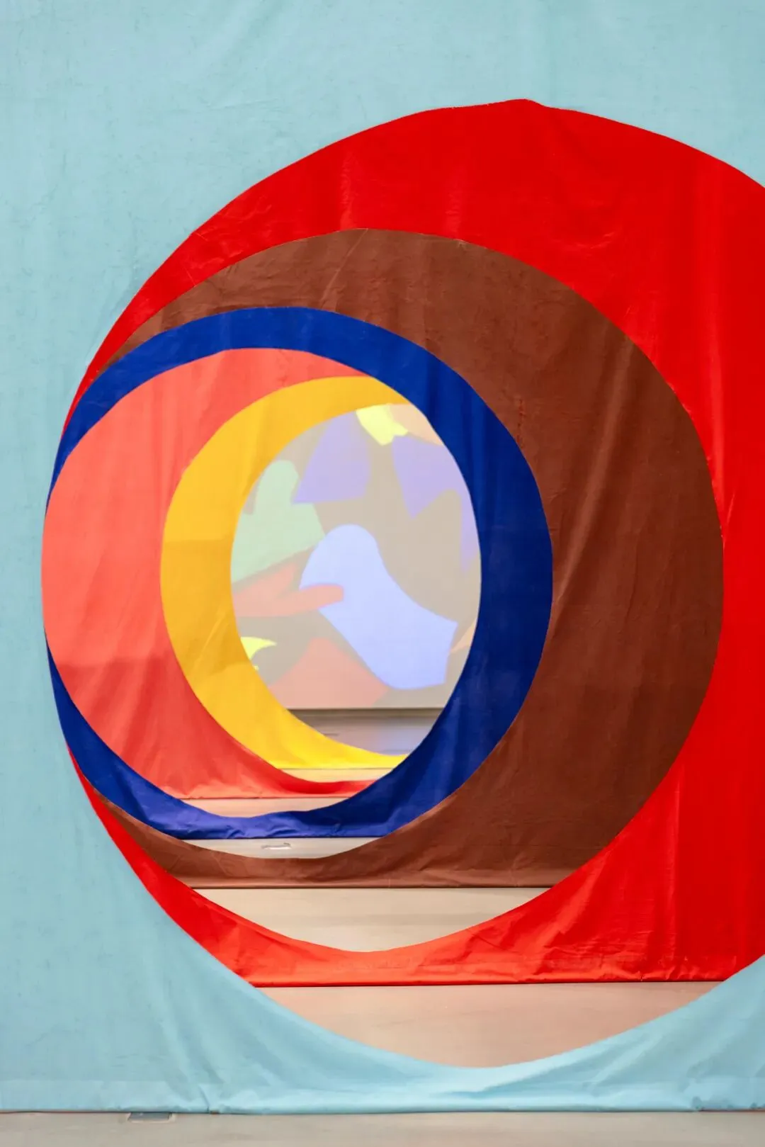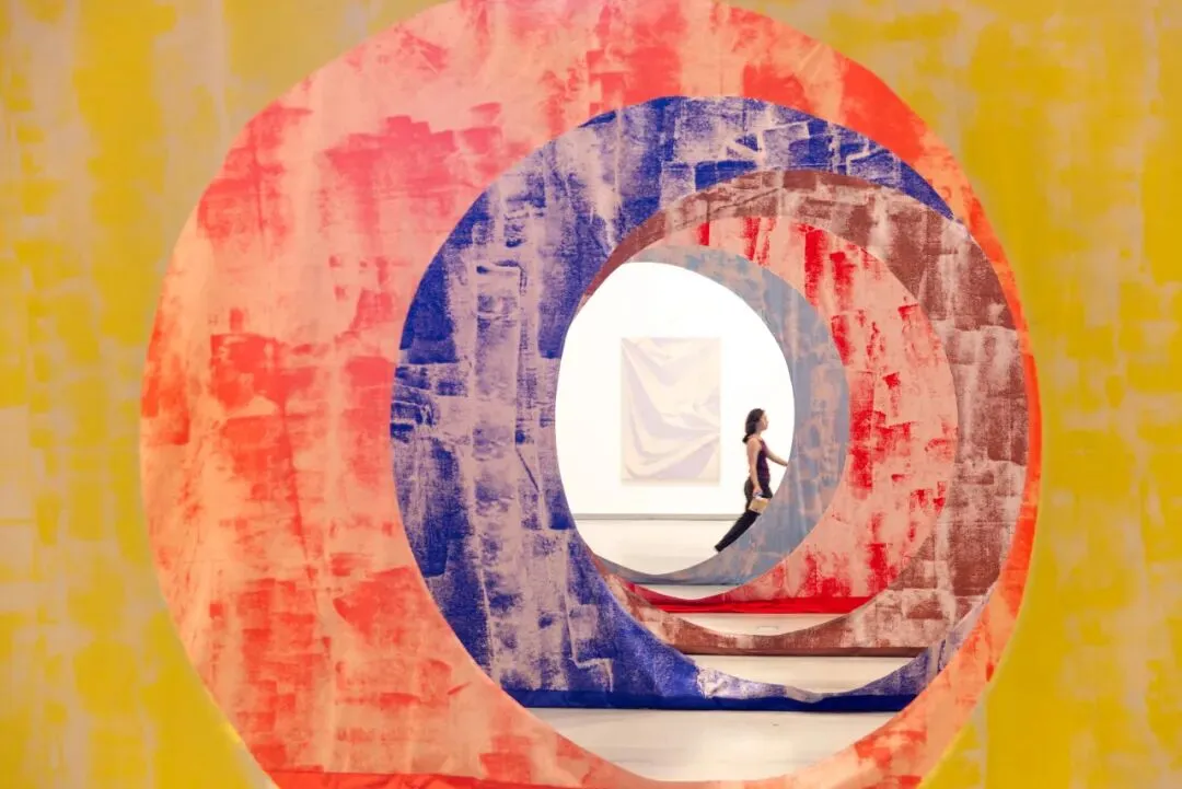 在布幕的缝隙间穿行,你不再仅仅是观看作品,而是被作品所容纳,成为色彩剧场中的一名演员。