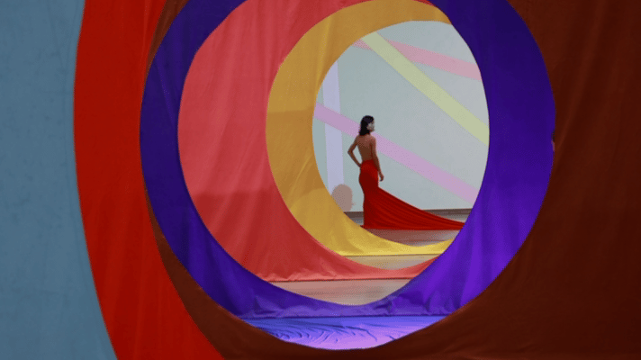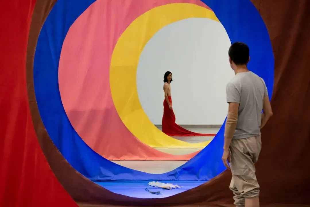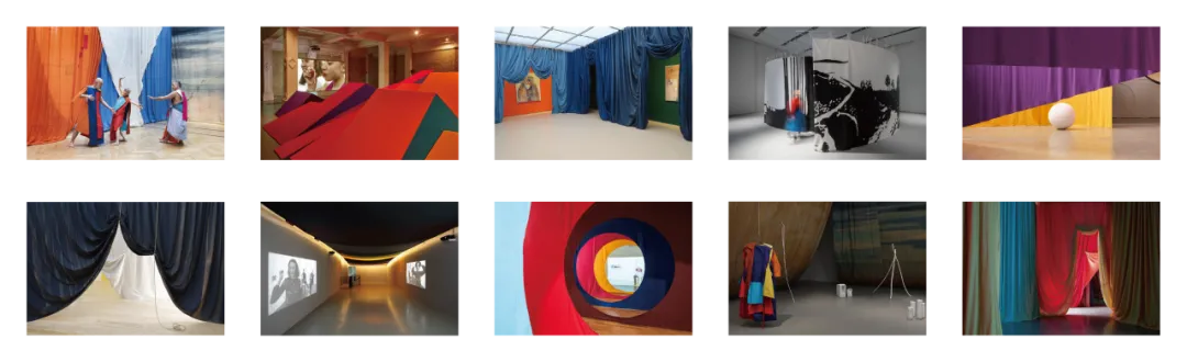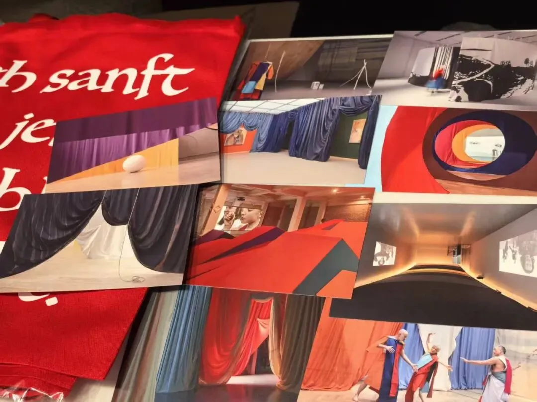艺术家擅用彩色织物、舞台道具、循环影像与偶发的表演。步入其中,你的身体、你的路径、你在某一片布幔前偶然的停顿,都成为作品意义生成的活态变量。