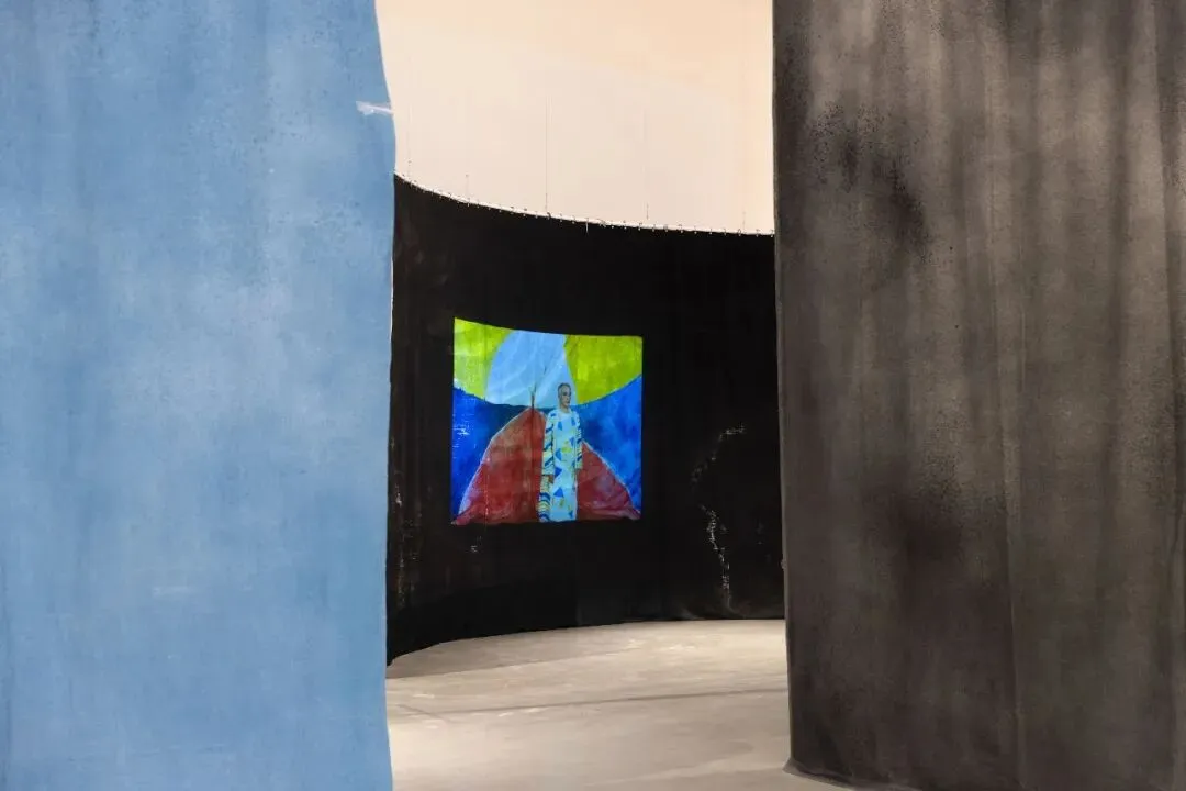 这里没有那条熟悉的白色界线,没有“请勿触碰”的低声提示。取而代之的,是层层垂落的幕布、缓慢流淌的影像、手工染就的织物,以及那些静默伫立的装置。整个展厅被转化为一座可供穿行的色彩剧场,一个允许迷失、鼓励停留、接纳呼吸的异质空间。