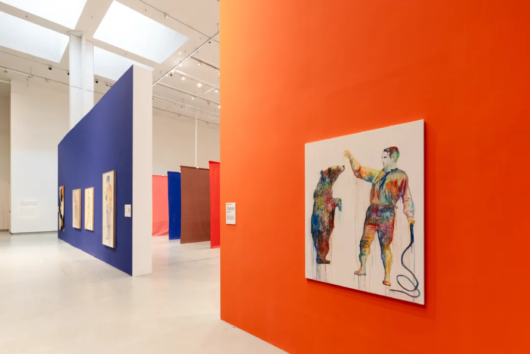 整个展览最不可错过的核心场域,是被高饱和度色彩照亮的巨型剧场空间。在乌拉的视觉语汇里,色彩绝非装饰性的附庸。