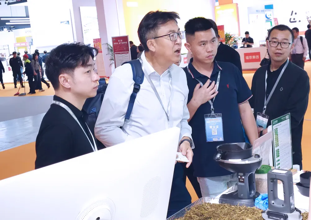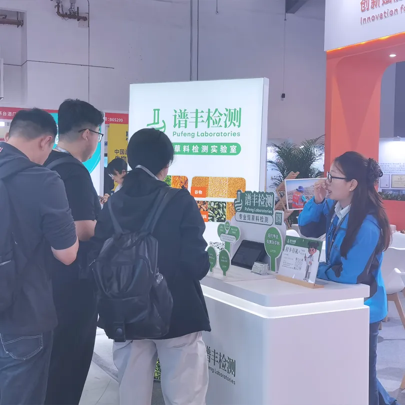 谱丰检测实验室特色展区同样备受瞩目,众多客户莅临现场咨询交流,深入了解基于近红外光谱技术的饲草料检测体系。展区现场互动频繁、洽谈热烈,来宾纷纷参与打卡,领取检测优惠券与实用好礼!
