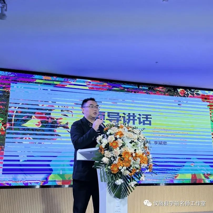 接着,县教科体局教育股股长李斌忠作重要讲话,首先,对仪陇县第一届课博会学前教育专场的顺利召开表示祝贺;对精心筹备本次活动的所有人员表示感谢;对在场所有参会教师表示慰问。他表示:学前教育是终身教育,全面教育的基础,要全面筑牢思想意识,服务意识。接着,提出三点希望:第一,希望大家认真学习,借鉴他人经验,取长补短,多学习、多积累,不断丰富自己的教育教学经验;第二,希望大家认真反思,结合自己工作实际,自省自查工作中的不足,做到学、思、用相结合;第三,希望大家认真践行,将所学所思所想运用到日常工作中,更好地指导幼儿游戏和一日生活,做有温度、有教育敏感性的幼教工作者。最后,预祝第一届课博会取得圆满成功。