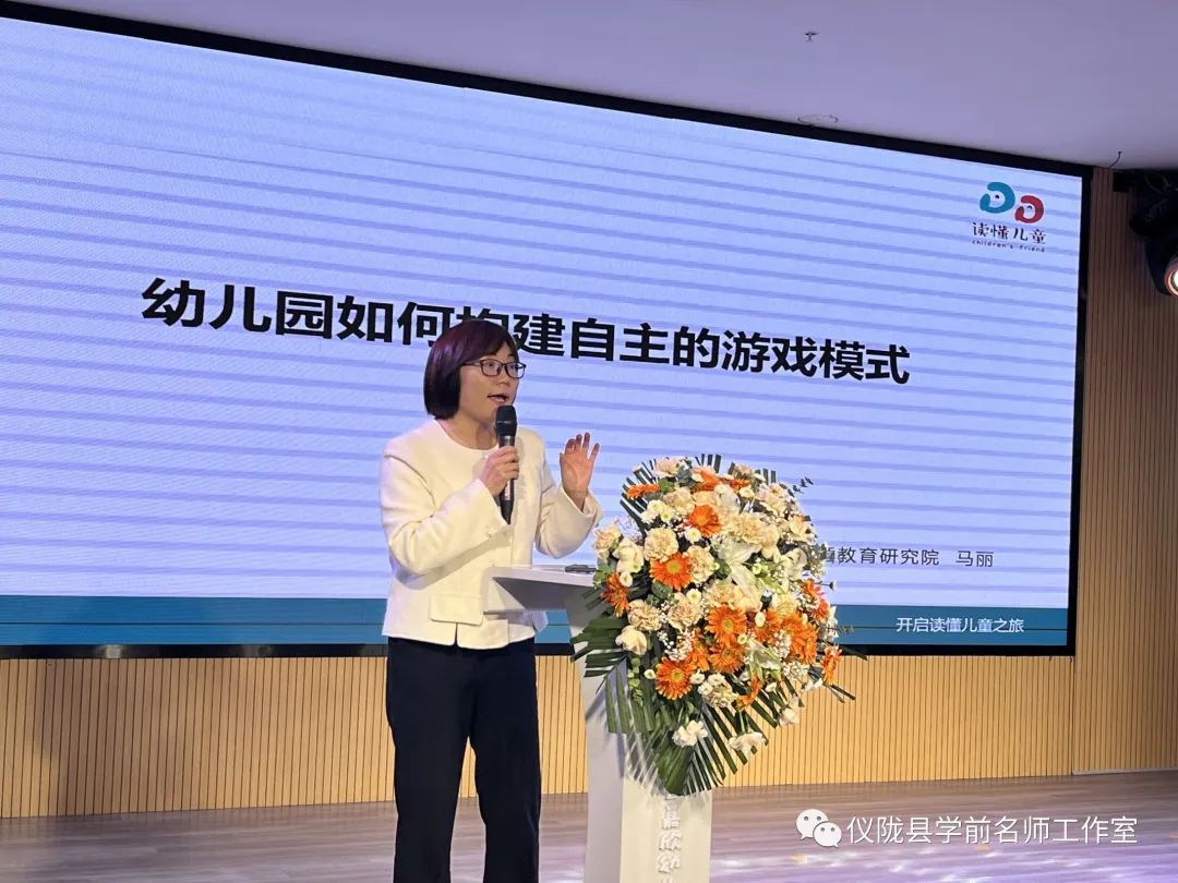 为切实提高自主游戏质量,提升参培教师在自主游戏中的模式构建及观察、评价能力,学前教育名师工作室请到了读懂儿童教育研究院马丽老师。