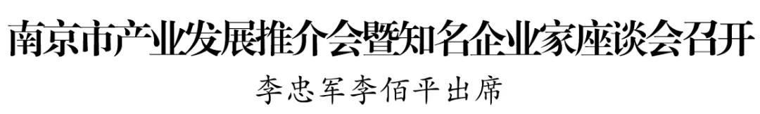 4月18日,南京市产业发展推介会暨知名企业家座谈会召开。市长李忠军,市委副书记、统战部部长李佰平,副市长蒋敏出席。