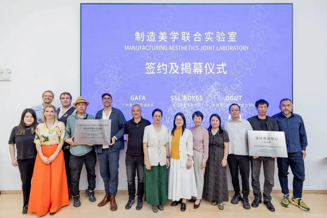 4月9日,松山湖盒子美术馆联合举办国际学术交流活动,揭幕“联结、希望、团结——表面的回声”和“一镜一‘视’界——李慧丰摄影展”两场展览,并揭牌“设计评论中心(松山湖)”及“广州美术学院油画系-东莞理工学院国际设计学院制造美学联合实验室”(以下简称“制造美学联合实验室”)。