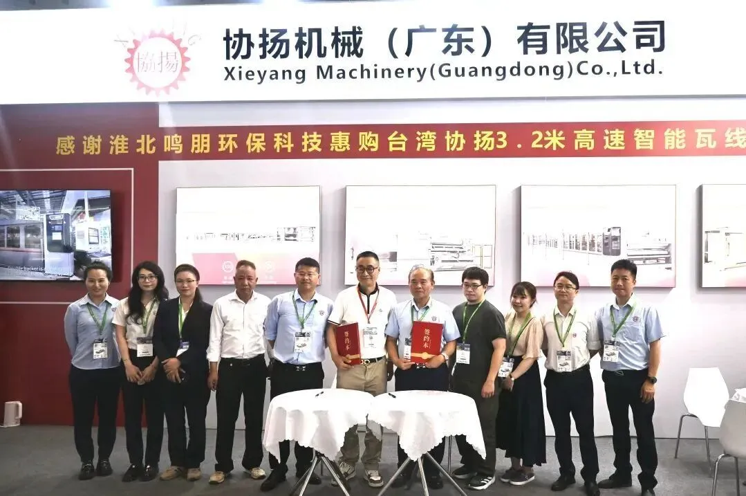 ▲淮北鸣朋纸业签约永进电脑智能物流系统与瓦楞干部设备
